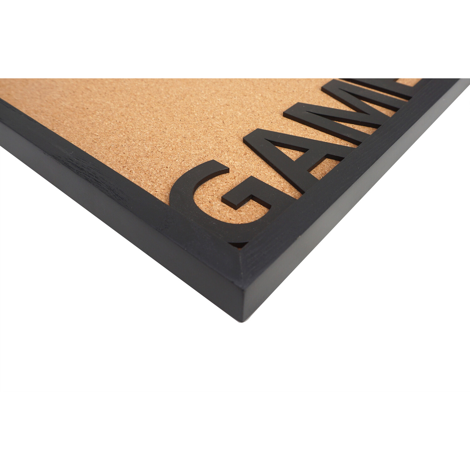 The Gaming Cork Memo Board is the perfect accessory for any gamer's bedroom or office space. The board is inspired by video game controls and features plenty of space to pin your notes, memories, and important dates to. It's finished with an attractive black frame which says "Game" along the bottom, making it easy to coordinate with your decor. It's also quick and easy to hang via the hooks on the back.