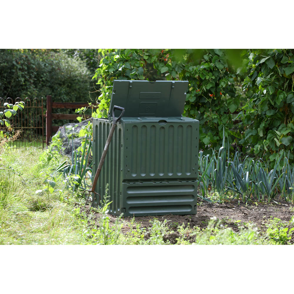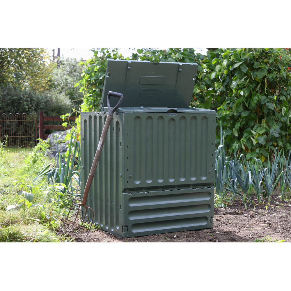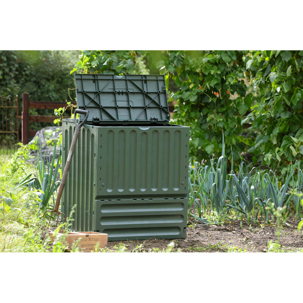 Make your own compost with Garantia Eco-King Composter 600L. This compost bin helps decompose organic matter into compost that you can use in your garden. It's perfect for your garden or allotment. The bin, made from 100% recycled plastic (PP), is useable all year round. It's easy to fill through two large filling covers. The convenient filling hatches grant easy access to the compost.