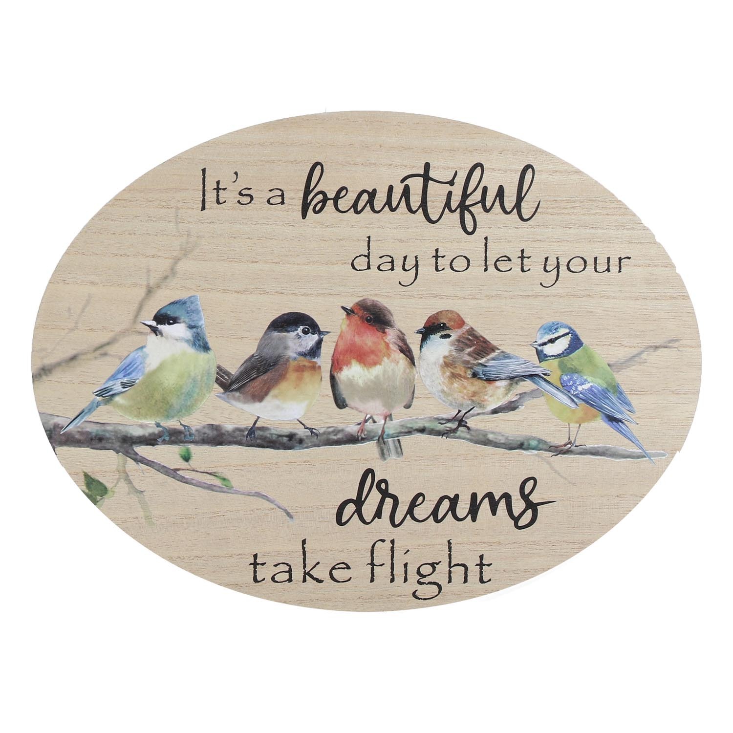 A beautifully charming and country-inspired piece of art for your home, this Garden Birds Rustic Wooden Sign is a point of inspiration. Printed on to a natural wood base, the plaque features common garden birds and elegant typography that says, "it's a beautiful day to let your dreams take flight." It's perfect for the living room, bedroom, or hallway.