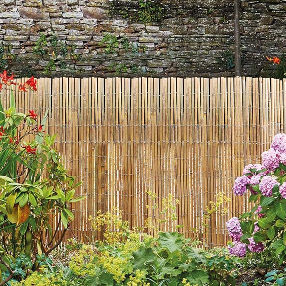 This bamboo slat fencing is perfect for adding texture and colour to your garden, as well as disguising unsightly fences, walls and bins. You can even use it to create separate or private spaces for benches, hot tubs, spas and tables. Alternatively, use in over an arbour or pergola to create a soft shaded area underneath. It can also be used to give height to existing walls or fences for extra privacy. It is supplied as a 4-metre-long roll and there are a variety of heights available in increments between 1 and 2 metres, allowing you to choose the height best suited to your needs. This fencing is made from natural bamboo canes to create a weatherproof, durable screen which can be easily installed using galvanised wire, cable ties, screws or nails (not supplied). You can even cut the fencing to a required height. Please note: This is a natural product and there will be variations from roll to roll. We cannot guarantee each roll is identical.