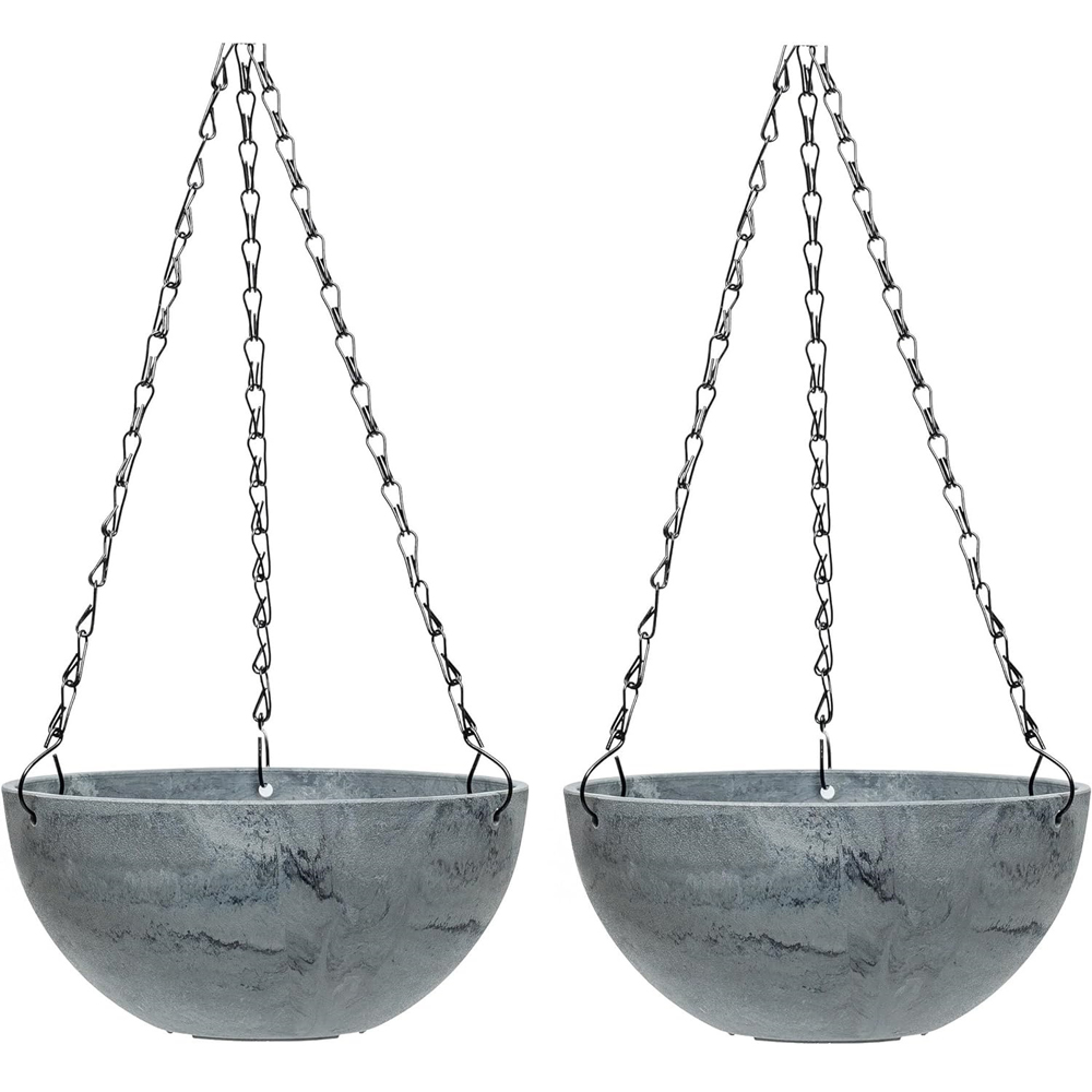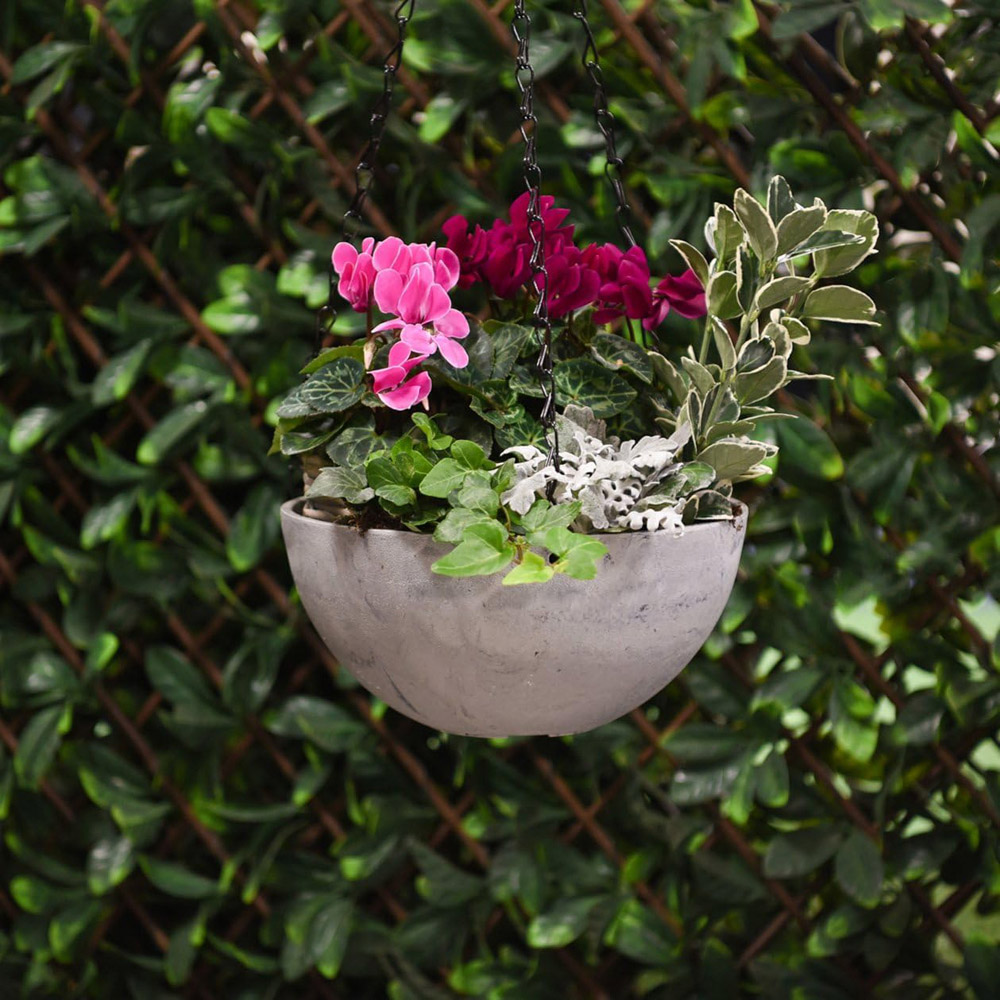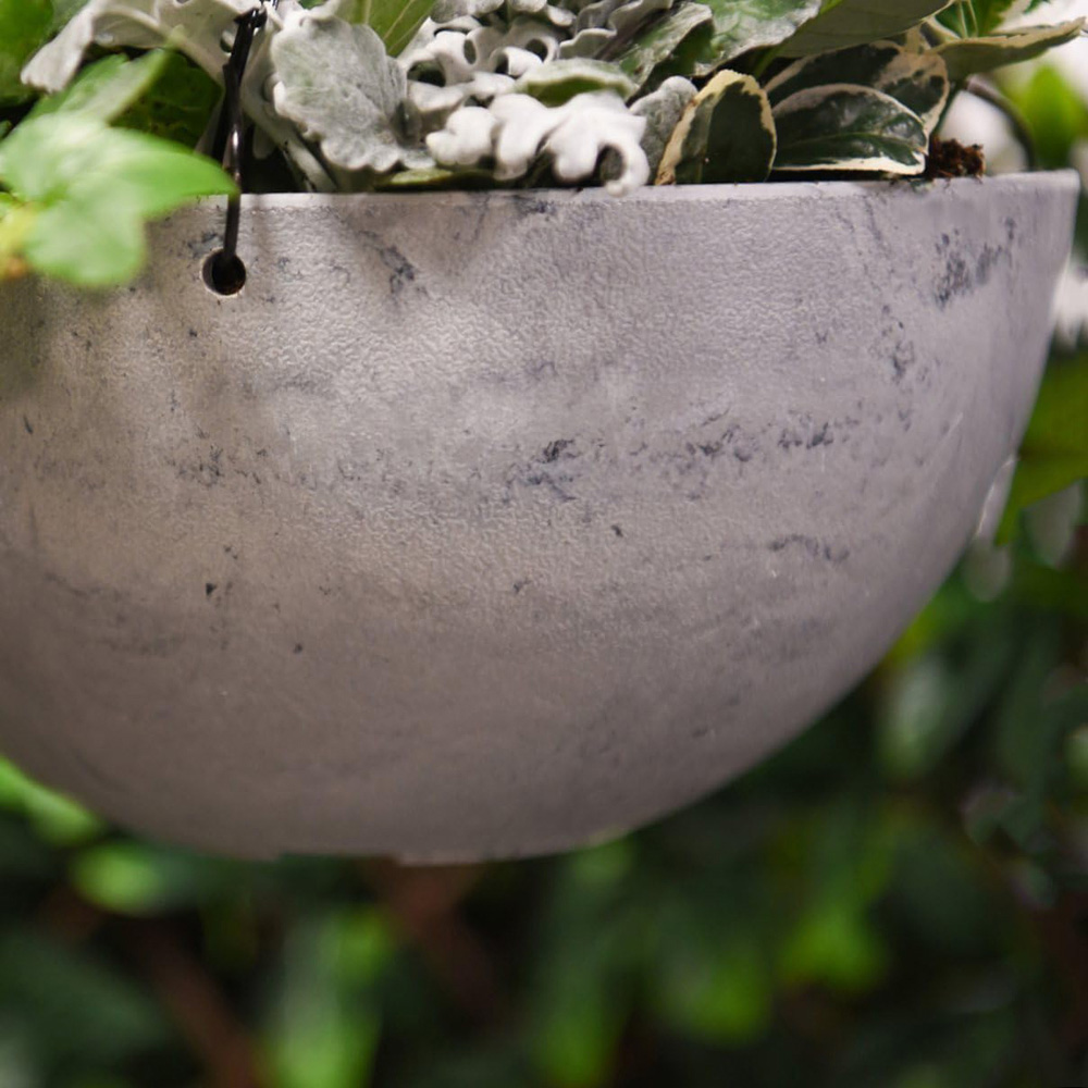 Enhance your garden displays with the Medium Stone Effect Hanging Basket. Perfect for vibrant flowers, trailing vines, fragrant herbs, or even tumbling tomatoes, this stylish basket offers both functionality and elegance. Crafted to mimic the look of natural stone, it effortlessly complements any garden design. Built to last, the basket is UV and frost-resistant, ensuring it withstands the elements and remains beautiful season after season. Choose from two stunning finishes: lily white or marble effect. Specifications: Diameter: 25cm Height: 13cm Bottom of Pot Diameter: 10cm Three-way 50cm metal chain included Material: 70% Recycled Polypropylene, 30% Stone Powder Thickness: 6mm Weight: 0.5kg Durable and eco-friendly, this hanging basket brings lasting beauty to your outdoor space.