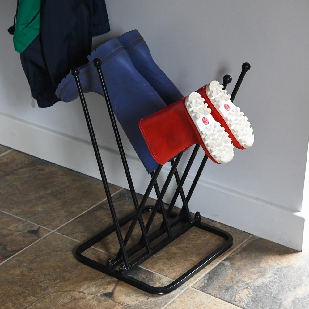 This metal boot stand is a practical and stylish storage solution designed to keep boots organized and off the floor, especially in entryways, mudrooms, or closets. Offering a sturdy frame made from durable powder-coated steel with a weather resistant painted finish it can hold up to four pairs. Indoor or outdoor it offers both function and style whilst also enhancing the decor of the space. Weight: 2.05Kg. Dimensions: L35 x W27 x H48cm.