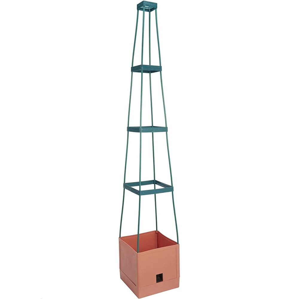 Grow tomatoes with ease thanks to this innovative four-tier self-watering tomato tower from Garden Grow. A planter, water well with four levels, this tower creates is perfect for growing tomatoes, peppers, runner beans, peas and blackberries. Simply construct the tower using the handy instructions included, fill the base with 2.3 litres of water using the handy filling hole and fill the planter with 9 litres of soil. Once your plants have started to grow you can raise the supports on the tower to accommodate your plants up to 1.5 metres. The ingenious base allows your plants to have constant access to water as they need it, and you can top this water up by filling the well on the base of the planter, or by using traditional watering methods. Ideal for your greenhouse or patio, this tomato tower can be used for a mixture of vegetables and is also great for creating flower displays. Kit includes: 16 support sticks, 4 support squares, 1 planter, 1 divider base, 1 water well hood, Specification. Dimensions: H150 x W25 x D25cm. Water capacity: 2.3L. Soil capacity: 9L. Self-assembly required.
