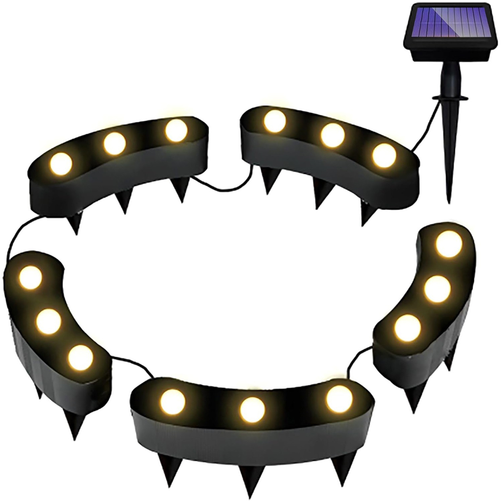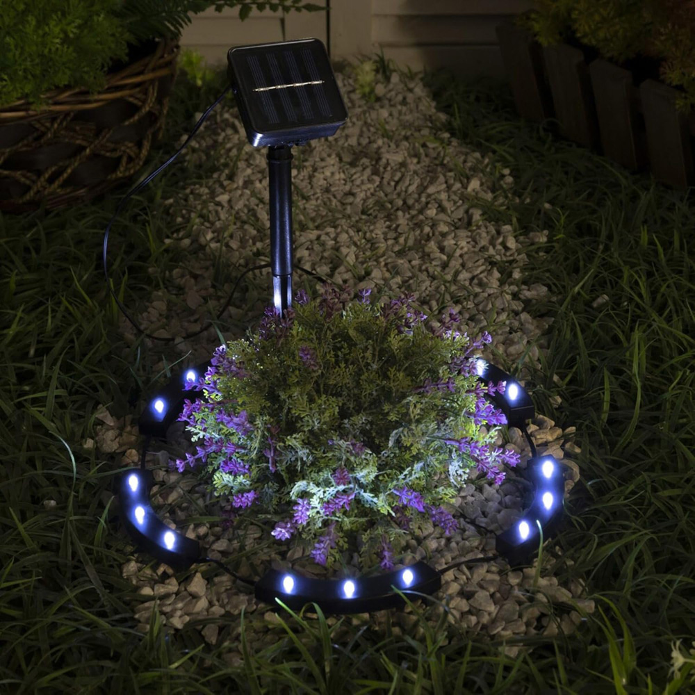 Perfect for illuminating pot plants, shrubs, and borders, Garden Gear Decorative Stake Solar Lights create a circular lighting display that enhances your garden’s ambience. Comprising 15 warm white lights, they are weather-resistant and waterproof to IP65 making them ideal for year-round use. Each of the five sections features three solar-powered LED lights, offering versatile placement options with a 2-metre lead and 20cm spacing between each section. The separate solar panel ensures optimal sunlight exposure, keeping your garden glowing effortlessly. Transform your outdoor spaces with energy-efficient, hassle-free lighting that brings your garden to life. Specification: five separate sections, each section consisting of three warm white solar LED lights. Each section measures: 9 x 2 x 4.5 cm. Separate solar panels so they can be positioned directly in sunlight.