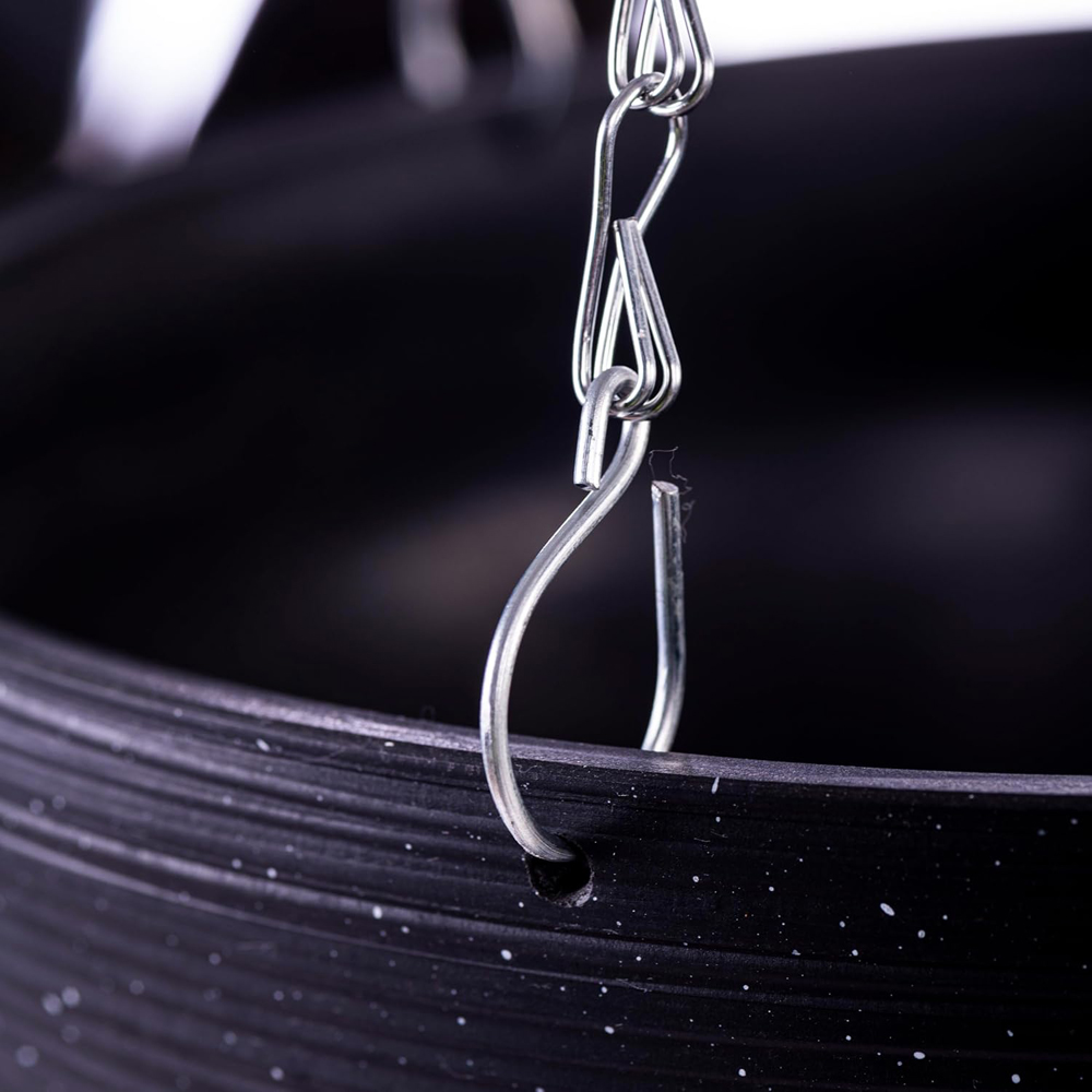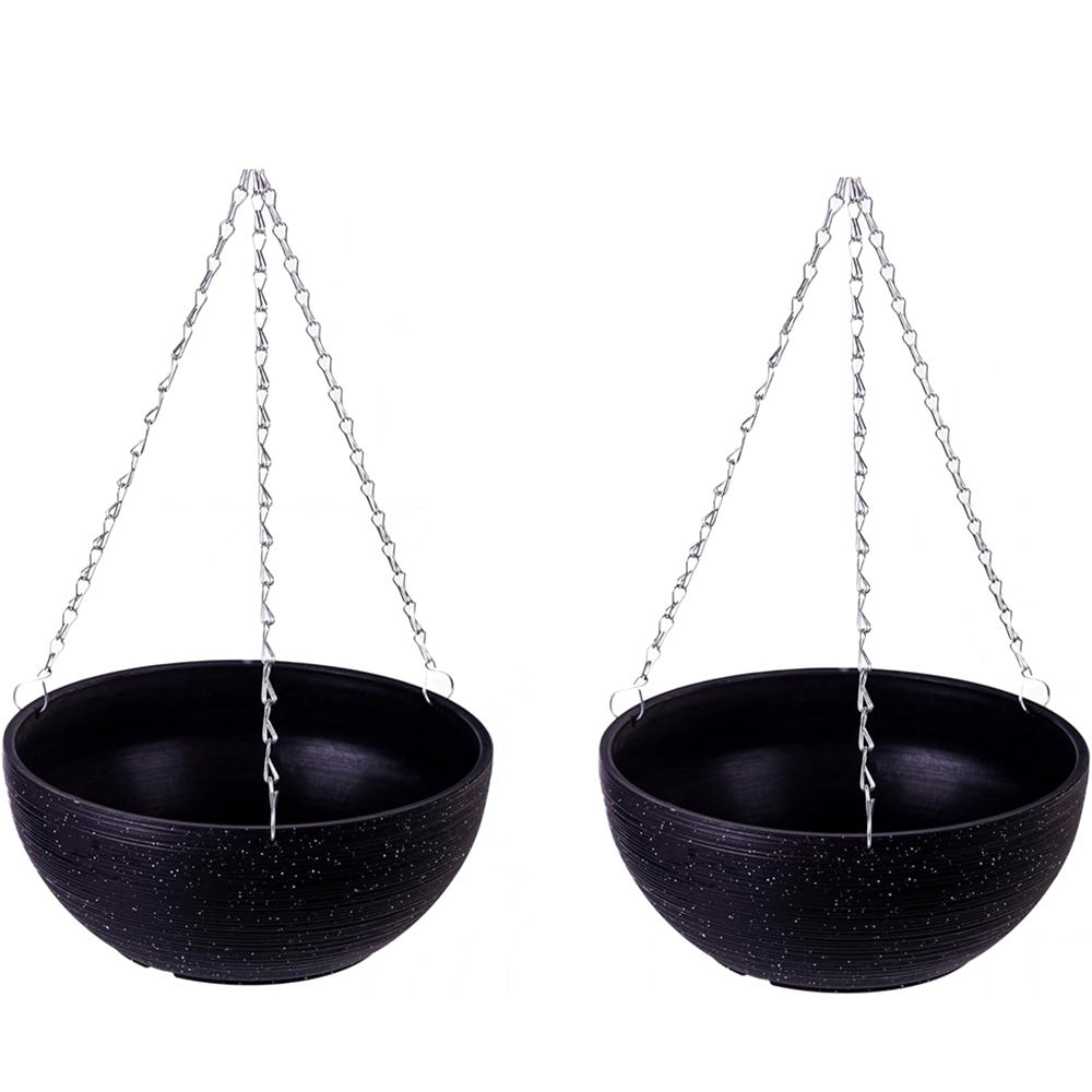 Elevate your garden's charm with the Stone Effect 35cm Hanging Basket in Black with Spot design, a masterpiece that flawlessly replicates the elegance of real stone. This eco-friendly basket is crafted from a blend of 70% recycled polypropylene and 30% stone powder, ensuring both durability and environmental responsibility. It's designed to withstand the harshness of UV rays and frost, promising to maintain its vibrant colour and structural integrity season after season. The included 50cm chain with a three-way connection allows for easy adjustments and secure hanging, making it a practical yet stylish choice for displaying your favourite plants.