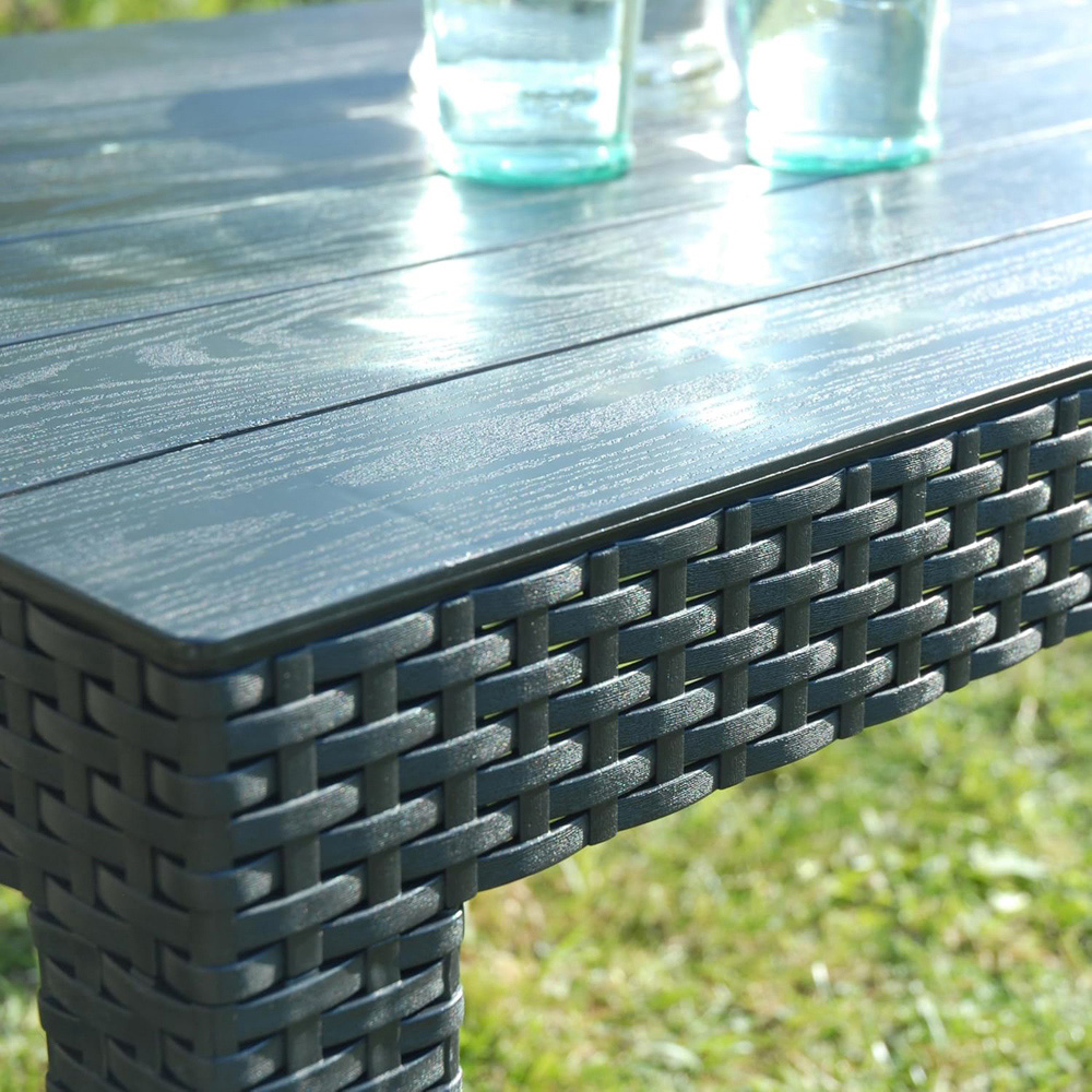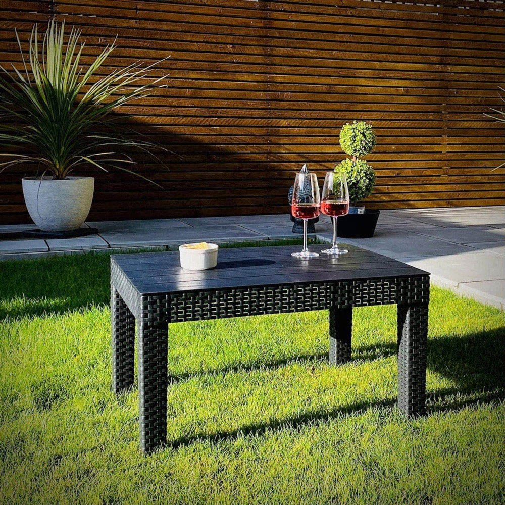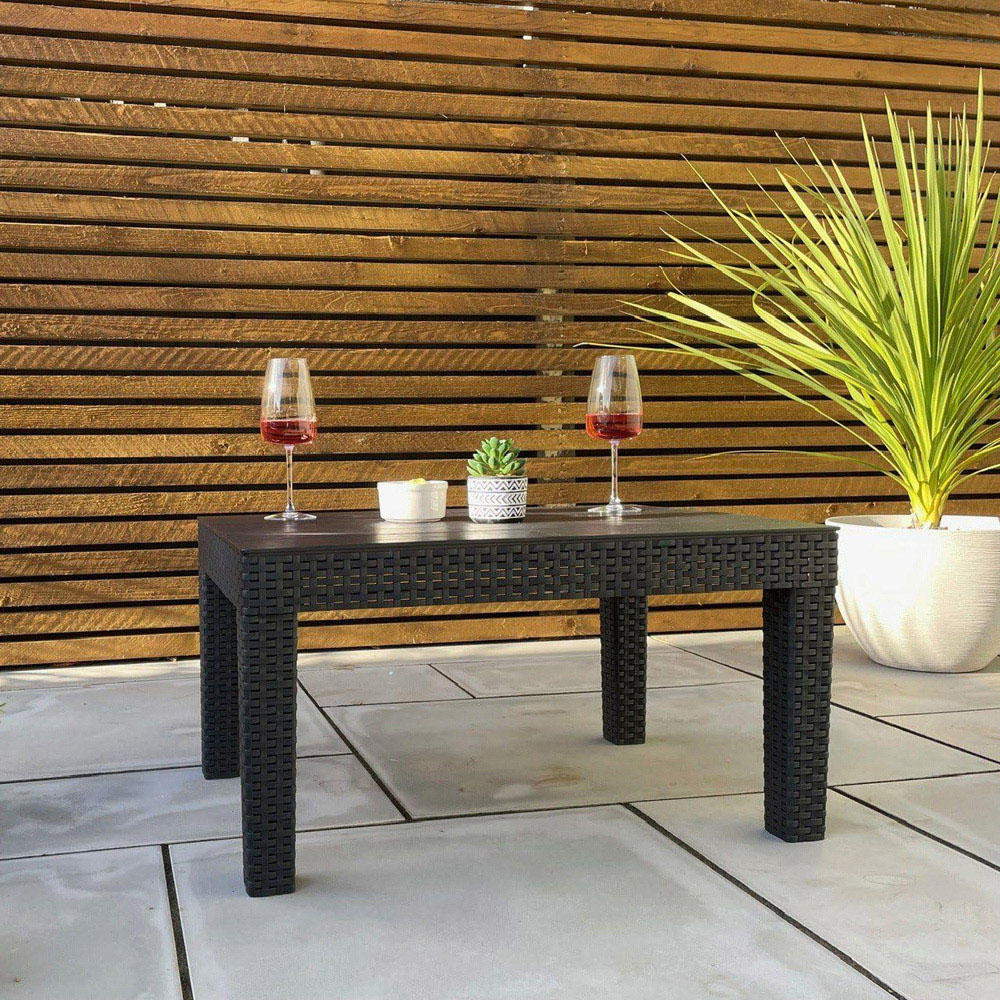 Elevate your outdoor lounging with the Garden Gear Black Rattan Effect Side Table, a perfect blend of elegance and functionality. Its chic black rattan design and wood-look tabletop bring a sophisticated touch to any garden, patio, or balcony. Lightweight yet durable, this table is crafted from high-quality moulded UV-resistant plastic, ensuring it stands up to all weather conditions without compromising on style. Assembly is effortless, and maintenance is as simple as a quick wipe, making it an essential addition to your outdoor space.