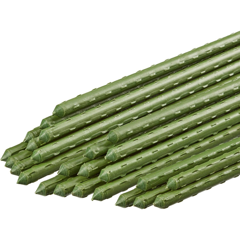 The perfect cane for something more durable than bamboo canes. These are a plastic-coated metal stake which will be more durable, hardwearing and will be able to bend with the plants inconspicuously. The plastic coating is designed with ribbed notches which allows for extra grip and helps stop slipping. The end is pointed to aid ground penetration.