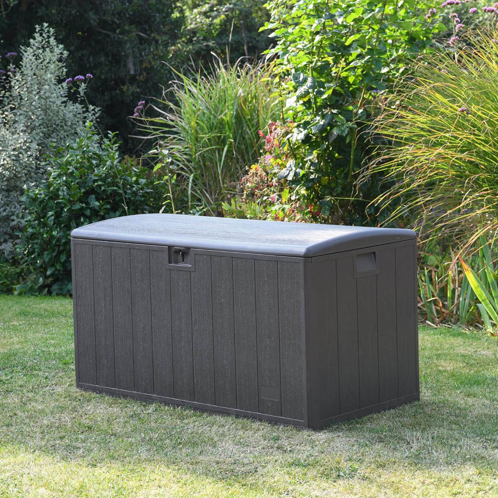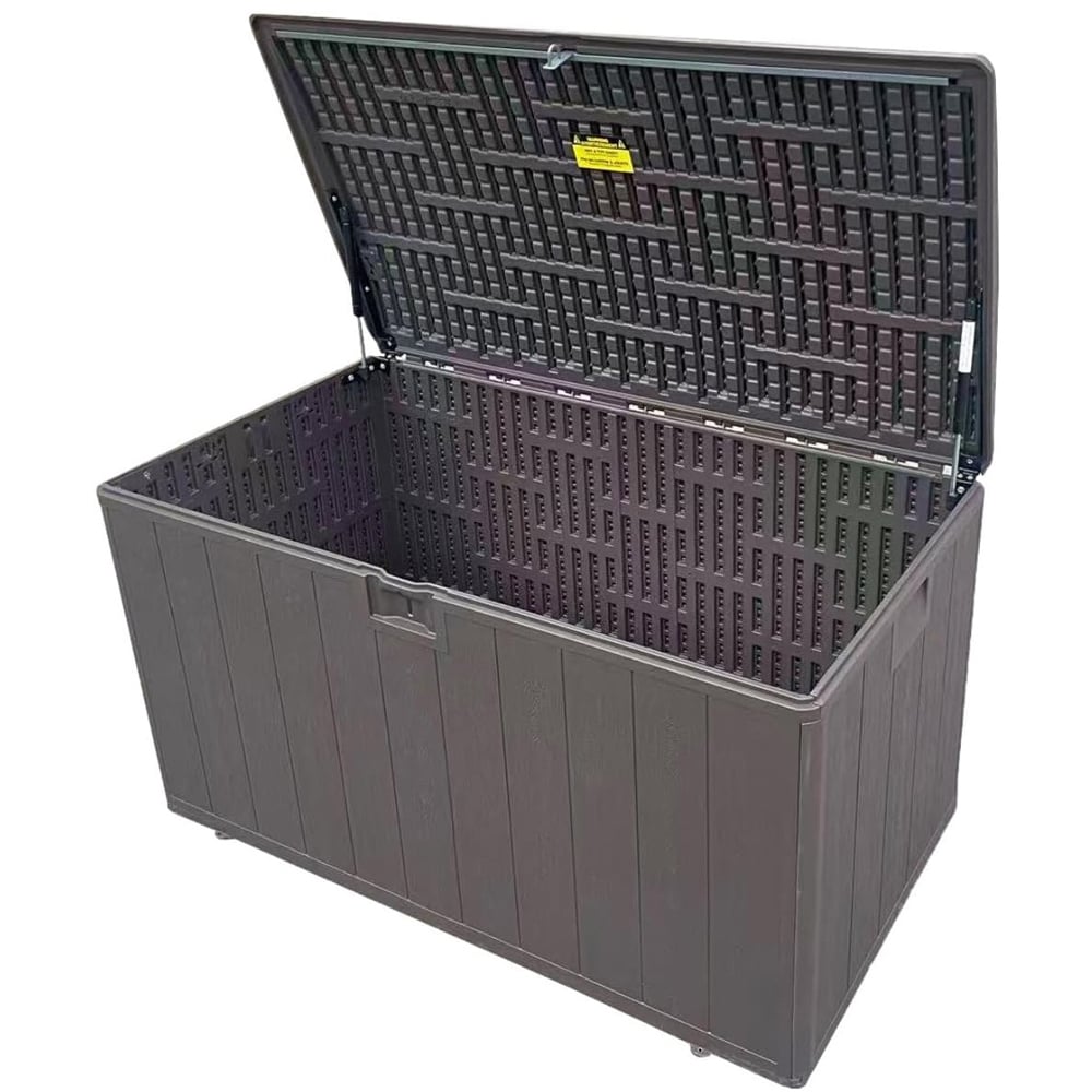 Keep your outdoor space organised and clutter-free with our premium quality Garden Gear 492L Heavy Duty Storage Box. Crafted from rigid, double-walled, high-density polyethene (HDPE), this storage box offers exceptional durability and long-lasting performance. It features a wood-effect finish that adds a touch of elegance to any garden, blending seamlessly with your outdoor décor. Designed for ultimate convenience, the box is equipped with hydraulic pistons for smooth, effortless opening and a soft-close mechanism to prevent slamming. The lockable lid provides extra security for your belongings (padlock not included), while the fully weatherproof and waterproof construction ensures that your items remain protected, even in the harshest conditions. With a generous 492L capacity (130 gallons), this box is ideal for storing garden furniture, cushions, tools, equipment, and machines. Whether you're looking to tidy up your patio or garden, this storage box offers both style and function. Capacity: 492L. Dimensions: 122 x 69 x 68 cm.