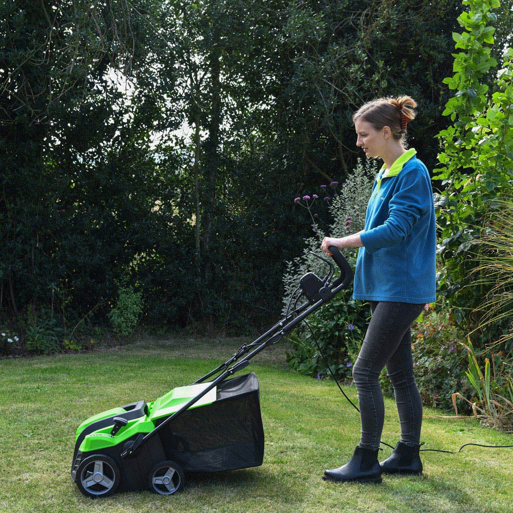 Breathe new life into your garden with the Garden Gear 2000W 2-in-1 Lawn Rake and Scarifier, a versatile tool designed to rejuvenate your lawn by removing unwanted thatch and moss while promoting essential aeration. Equipped with a powerful 2000W motor and a spacious 55-litre collection bag, this machine tackles even the most demanding garden tasks with ease. Its dual functionality allows for easy switching between the Dethatching Rake Roller and the Scarifying Aerating Roller, ensuring your grass receives the best possible care. The adjustable handle offers three positions for comfort, and the foldable design makes storage simple. With a long 10-meter power cable and robust front and rear wheels, manoeuvrability is a breeze, making it ideal for gardens of all sizes.