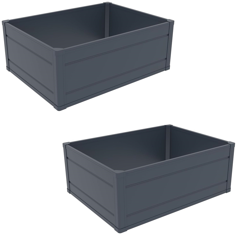 Garden Gear Raised Garden Beds are perfect for growing flowers, vegetables or herbs on balconies, patios, in small gardens or where the existing soil is poor. Fill them with the perfect compost mix for your chosen plants and they’ll benefit from raised soil temperatures, increased rooting depth and excellent drainage from their open-bottom design. Stylish yet practical, the beds come in a dark grey colour that blends into any landscape and shows off your plants to full effect. Built from heavy-duty, durable plastic, the beds are strong, fully weatherproof, and long-lasting. Rolled corners ensure protection from sharp edges. At 30cm high, they are easy to assemble - place them directly onto bare soil or, if sitting on a patio or decking, we recommend using a suitable liner and laying on a bed of approx. 10-20mm of gravel to aid drainage. Colour: Dark Grey. 80 x 60 x 30cm.