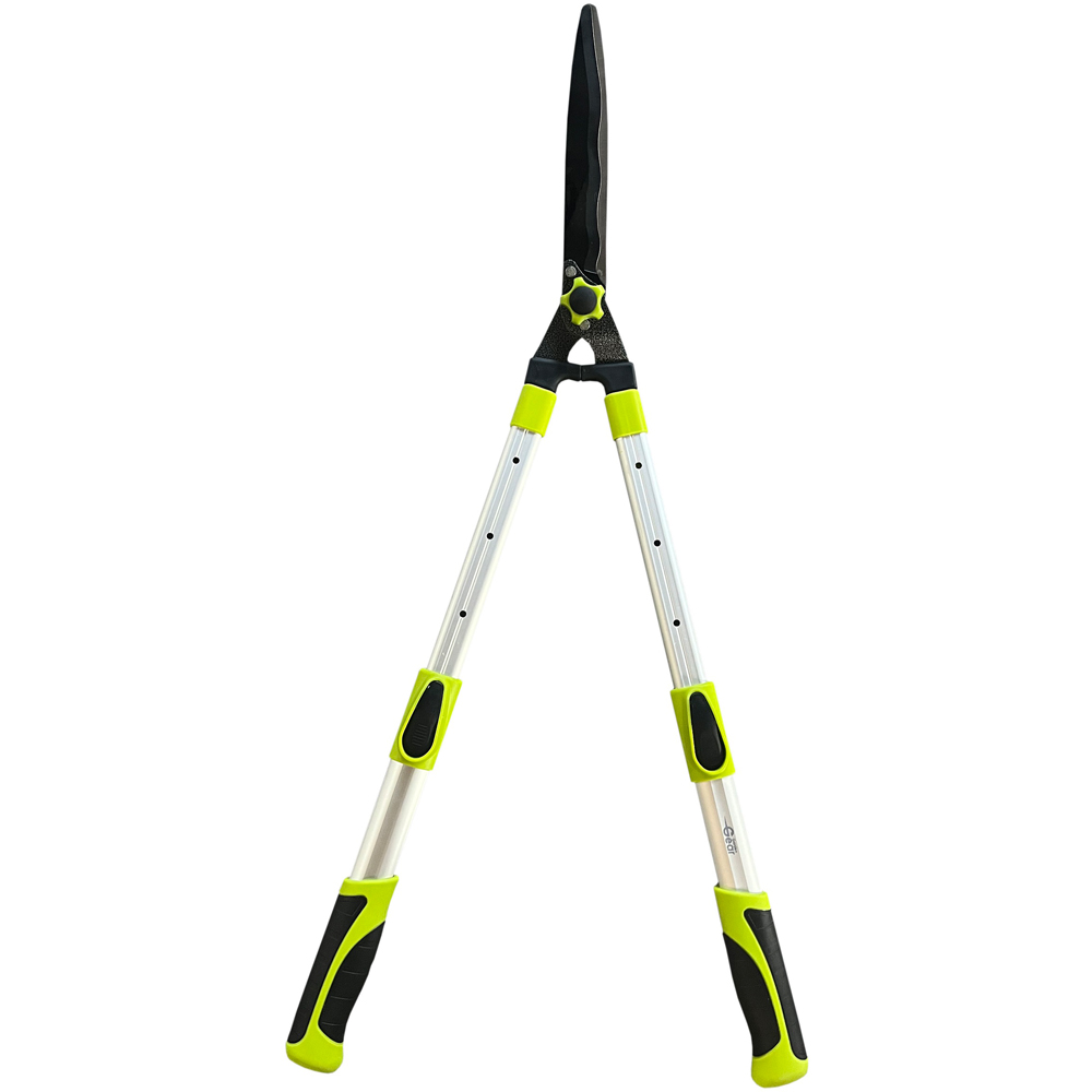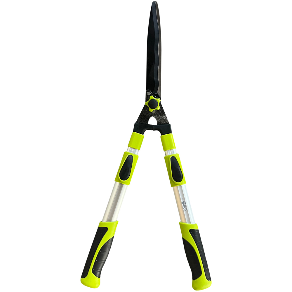 Garden Gear Telescopic Long Reach Hedge Shears are ideal for shaping and manicuring hedges, shrubs and topiary plants. The shears are equipped with high-quality, carbon steel, chrome-plated blades with Teflon coating to ensure great cutting performance and precision cuts. The wavy blades are designed to give extra grip on branches/twigs. Strong and light aluminium handles make working easy and with minimum effort. The regular length of the handles is 64cm, extending to 84cm so you can easily reach those higher branches. A simple press and lock button activates the telescopic mechanism. The handles feature soft cushion grips for extra comfort. Shock-absorbing bumpers stop jarring vibrations and reduce arm and shoulder fatigue. Age Verification Required on Delivery: This product is not for sale to people under the age of 18. To confirm the recipient is over 18 years old, a valid photographic ID with a date of birth may be required upon delivery.