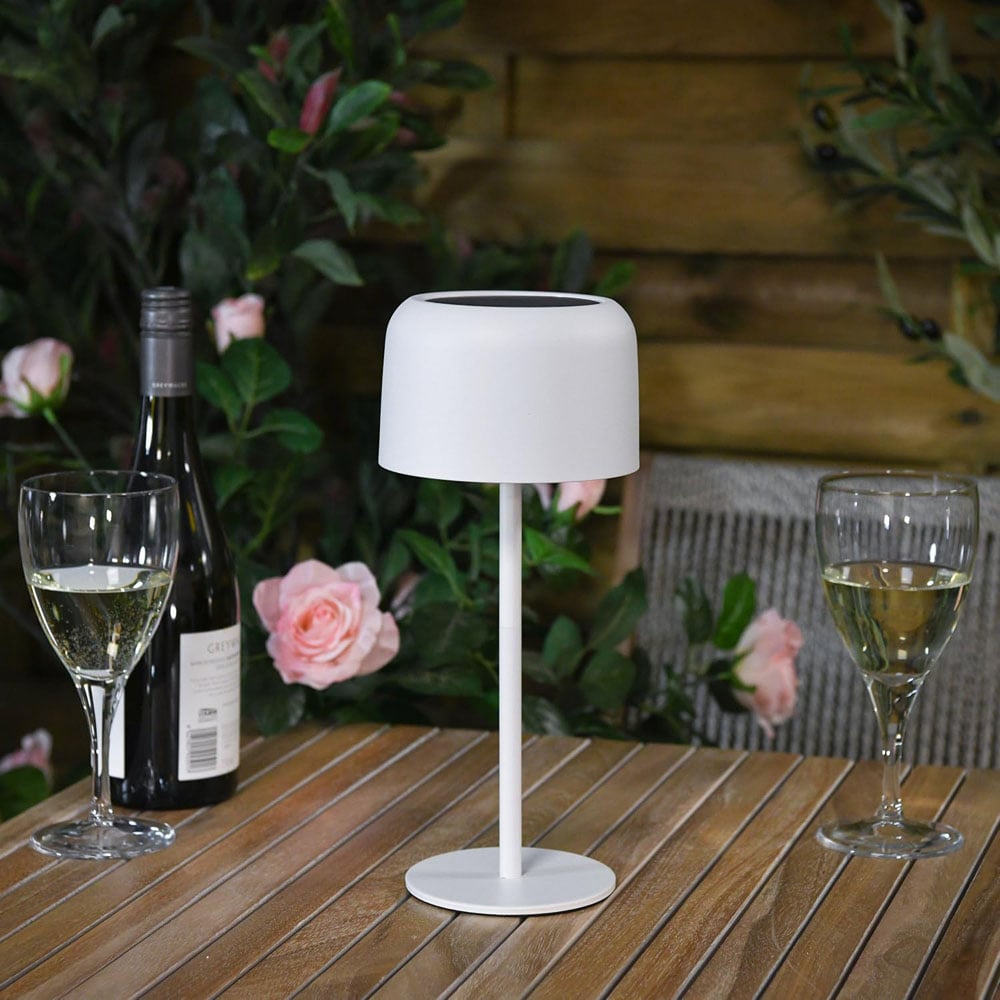 Stylish, practical, and energy-efficient, the Garden Gear Solar Metal Table Touch Lamp offers cordless convenience with the added flexibility of both solar and USB charging options. This 3W LED lamp provides up to four hours of light when fully charged. Solar charging takes 8 hours, while USB charging is just 2.5 hours. The solar function automatically charges during the day and illuminates automatically in the dark. A touch control activates when the light is on, offering three brightness levels: low, medium, and full. Crafted from durable metal with a sleek matte finish, it features a non-slip EVA polymer base matt to protect surfaces. Designed for both indoor and outdoor use, the IP44 waterproof rating makes it resistant to light rain and splashes, though it should be stored indoors during harsh weather and over the winter months.