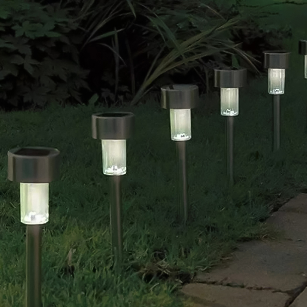 Never walk up your path in the dark again! These striking and stylish LED stake lights come in a pack of 10 and are ideal for lighting your entrance way, along a badly lit path, or anywhere around the garden requiring some light. These lights add the perfect finishing touch to any garden or outdoor space, and make a great addition to all garden parties and barbecues. These LED lights will create a beautiful atmosphere for you and your guests when entertaining outdoors. Using LED bulbs, these lights are powered by the sun. Simply place them in an area where the light will get direct sunlight and allow them to charge throughout the day, giving you hours of light as the darkness starts to fall. Simply place in soft ground, stand back and watch how they glow and make your garden stand out, you won't want to go back in your home once these are lit. The LED lights will automatically turn on at dusk and off at dawn, but also come with an on/off switch. Please ensure you wipe the solar panel once in a while to avoid rusting. These would make a great gift for Christmas for the one who loves to be in their garden.
