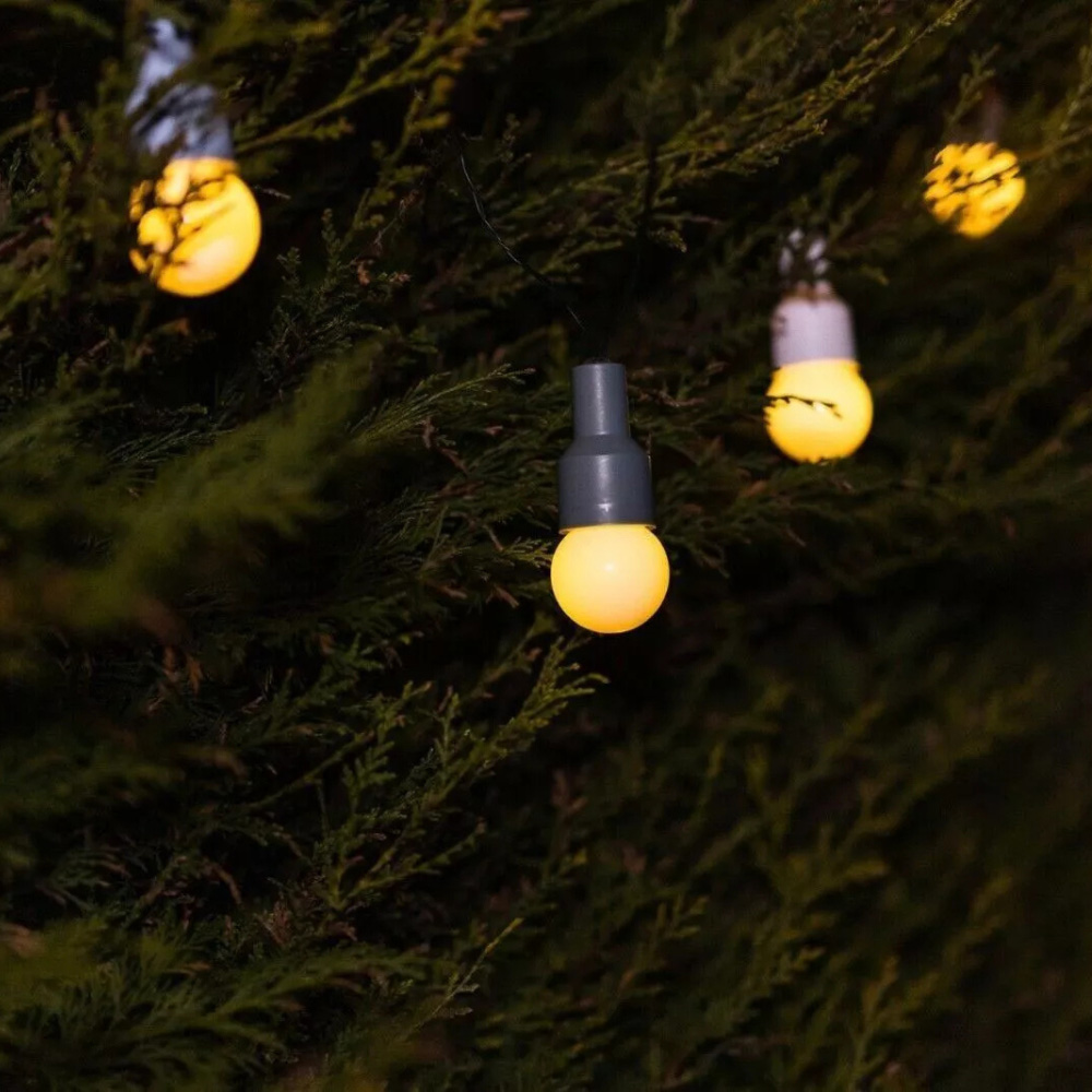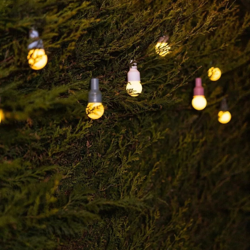 Make your garden stand out from the crowd and follow the Scandinavian trend with these stunning vintage-style solar Hygge festoon string lights. The 10 warm white LEDs run along a dark green cable, housed within real glass globe-shaped bulb caps in order to mimic the shape and design of traditional Edison bulbs. Each bulb also features a pastel-coloured cap, which adds an extra little touch of joy to these charming lights. The external solar panel stores up its power from the sun during the day and the lights turn on automatically at dusk, meaning your lights are environmentally friendly and incur no running costs. There is no need to worry about replacing the battery either since it is rechargeable. These fabulous festoon lights look great placed anywhere in the garden and also work really well as wedding or event decorations since festoons are the go-to choice for lights with a difference. The solar panel is positioned on a stake, which is to be placed firmly into the ground in a non-shaded location. The lit length of these lights is 1.8m and there is a 2m lead cable running from the solar panel to the lights.
