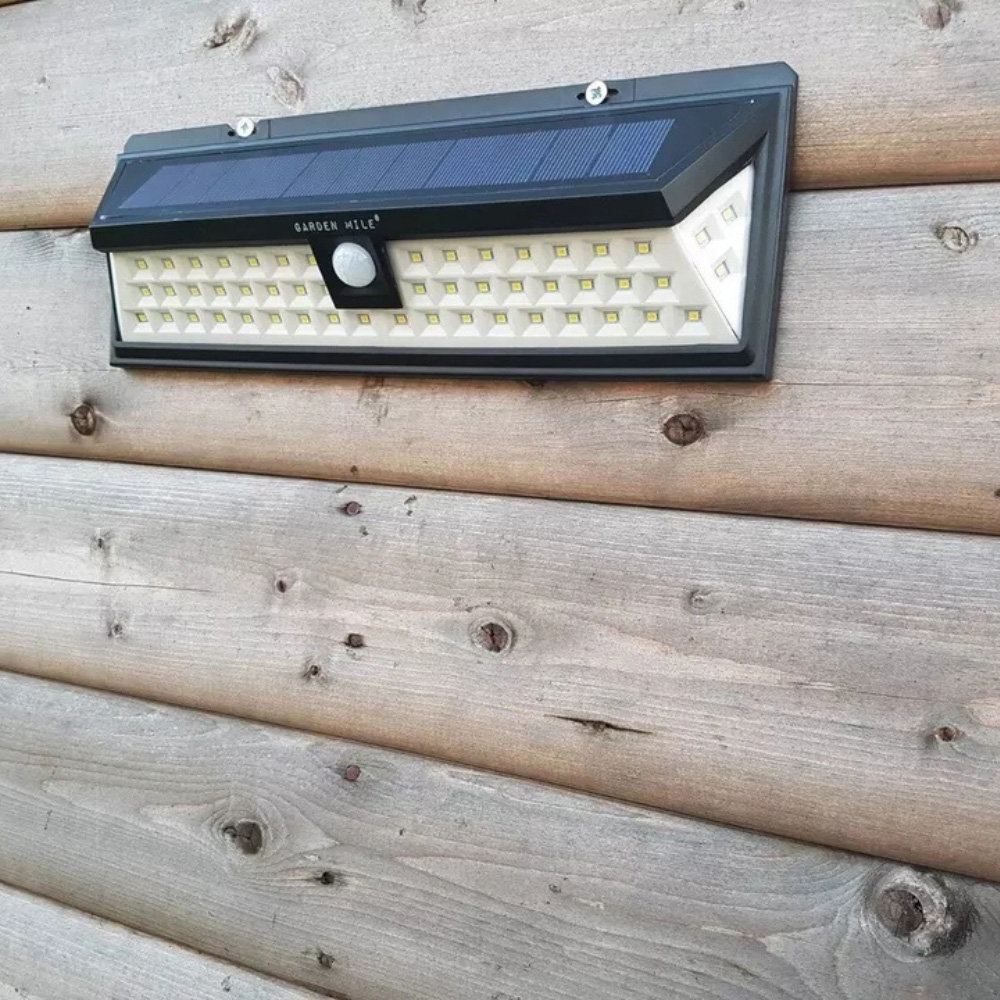 Secure your garden at night with this LED Solar security light. Featuring 66 high power, ultra bright white LEDs, they are perfect for bringing bright illumination to any area surrounding your house and garden, especially at front or back doors, garages etc. They Come supplied complete with a wall fixing kit so this versatile light can be mounted almost anywhere you choose, with popular destinations being fences, garages or any house wall. When darkness falls, the centre sections will light up automatically and will stay on through the night making them perfect for use to highlight doorways etc. If movement is detected the in built motion sensor will switch on the bright lower light which makes this great for use as a security light. The inbuilt motion sensor will detect movement up to 10 metres away. As it is solar powered there is no wiring to worry about. The integrated solar panel will recharge the internal battery during daylight hours. Simply ensure that it is placed in an area of direct sunlight. An intelligent light sensor will activate the light at dusk, and will deactivate the light in the morning. Light time is typically 6-8 hours, but this depends on the amount of charge received. The solar panel has been updated to a laminate version which is more efficient at converting the sunlight into battery charging power. It also has a life expectancy three times longer than the original epoxy board design. As this solar light is designed to be used outdoors it may be exposed to rain. To improve the product life, there are now two separate seals between the internals and the back case. Therefore the light more durable and weatherproof than ever before.