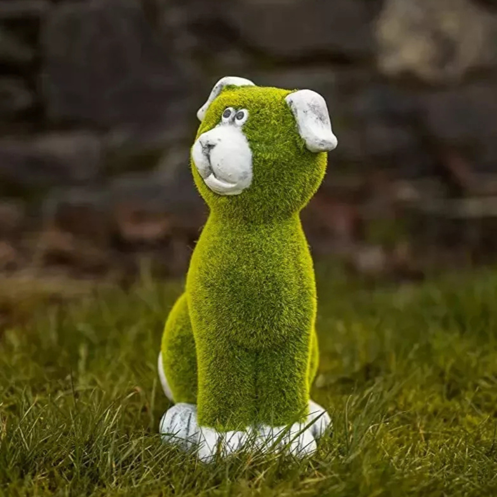 Enhance your garden with this flocked Grass and Stone Effect Dog statue. This charming piece can be displayed on any patio, step, or lawn, adding style and a playful touch to your home or garden. Made from durable, waterproof, and long-lasting resin, this statue features a rustic stone effect and is covered with artificial grass. Its delightful design seamlessly fits in with both modern and traditional garden decor. This cheerful puppy can be used both indoors and outdoors, making it a versatile addition to any outdoor space.