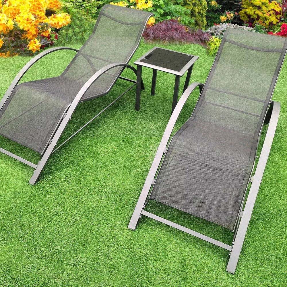 Experience relaxation in style and comfort this summer with this stunning set of two lounge chairs, complete with a side table. It’s the perfect spot to unwind with a book and keep a drink within reach. This set will be a delightful addition to any outdoor space, whether by the pool for catching some sun or in a shaded area for a leisurely afternoon of reading and relaxation. The lightweight construction allows for easy mobility, so you can effortlessly move the chairs wherever you need. It also comes with 170° recline and an adjustable headrest. Made with durable, quick-drying mesh fabric woven for strength, the sturdy steel frame ensures you feel stable and comfortable as you lounge in the sun. Setting it up is simple and quick; the set comes with clear, easy-to-follow instructions along with all the necessary fixtures and fittings. The unique combination of breathable, low-maintenance fabric on a durable steel frame offers maximum comfort and durability, inviting you to relax every time you use it.