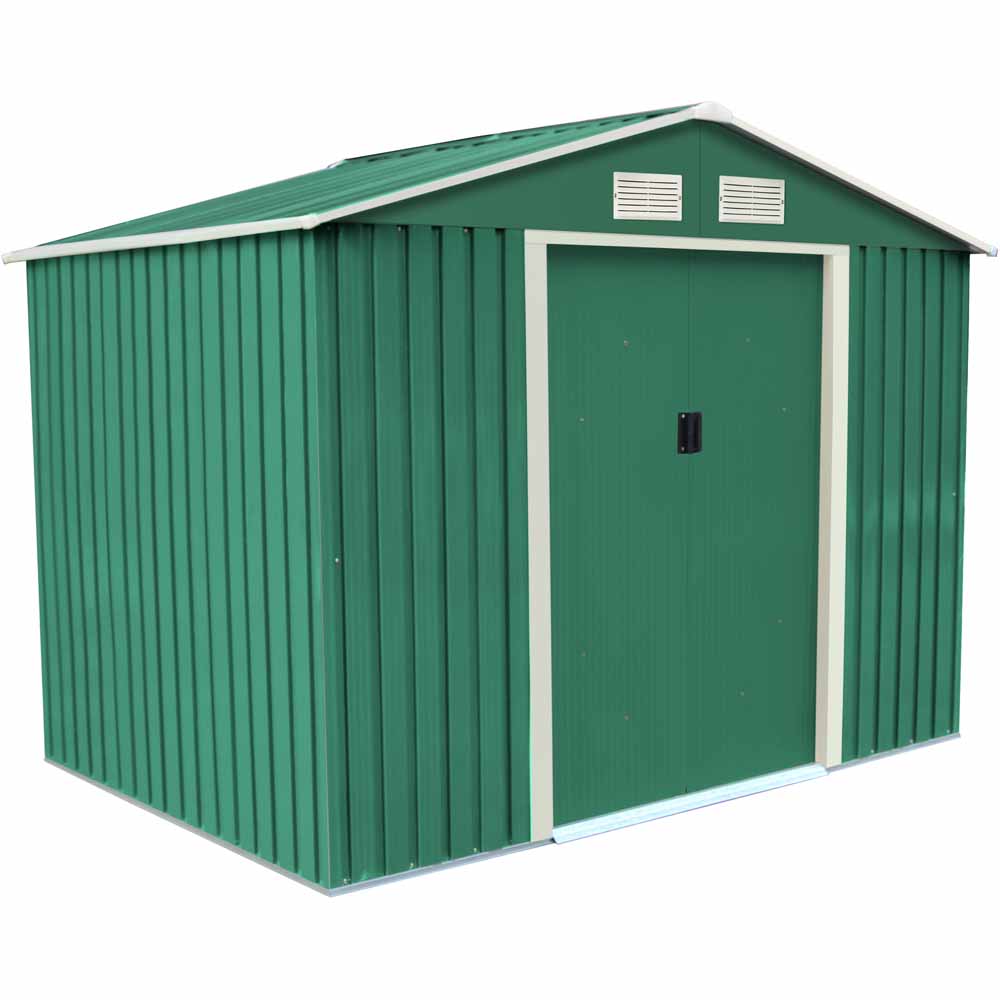 Charles Bentley 8 x 10ft Green Apex Metal Garden Shed with Floor Foundation