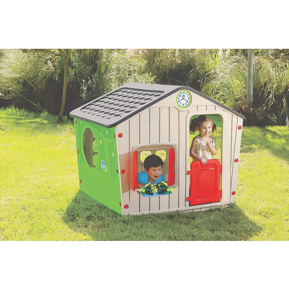 Playing house will never be so fun as when kids play it in our colourful Garden Playhouse. The playhouse is ideal for gardens and playrooms and features bright panels with cut-out windows, doors that opens, and a working window shutters too! Ideal for realistic fun play, the playhouse will easily ignite children's imaginations as they play and learn how the world around them works. It's easy to assemble and will keeps kids entertained and playing outdoors for hours.