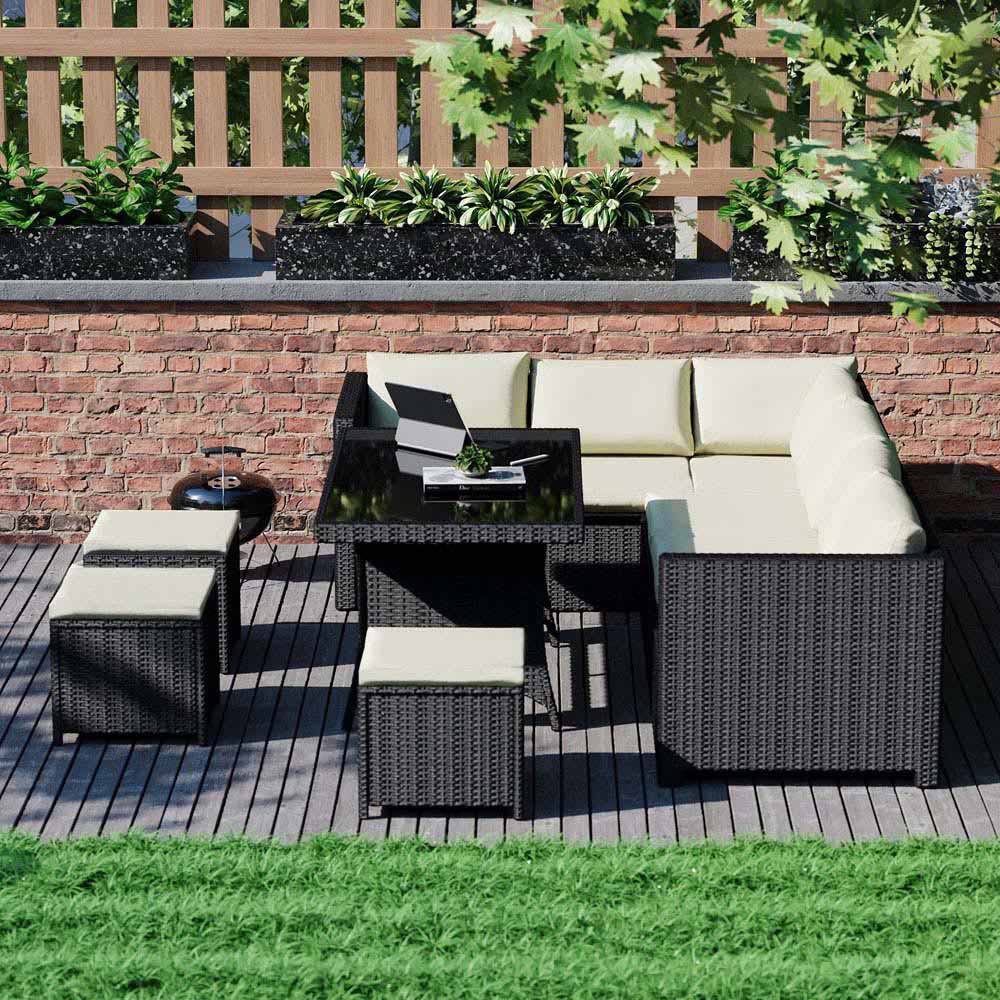 Garden Vida Belgrave Rattan Effect 9 Seater Garden Dining Set Black