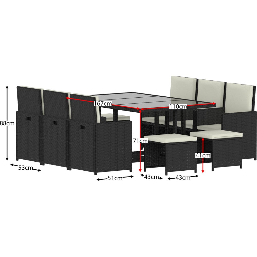 Garden Vida Cuba Rattan Effect 10 Seater Garden Dining Set Black