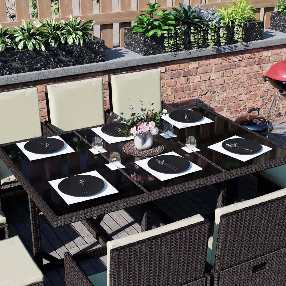 Garden Vida Cuba Rattan Effect 10 Seater Garden Dining Set Brown
