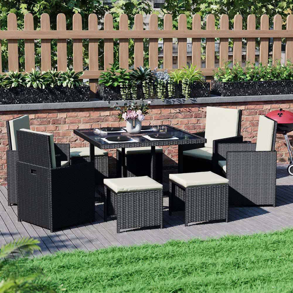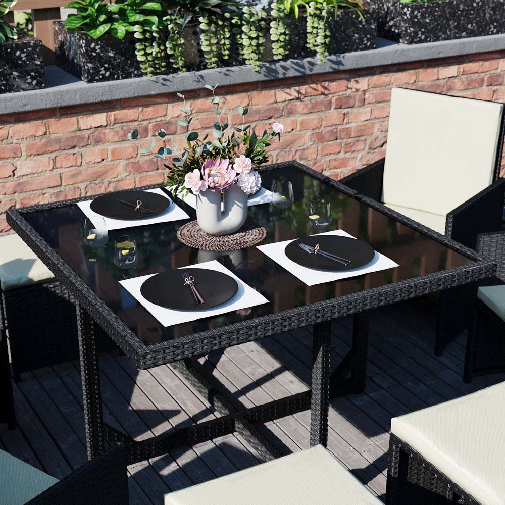 Garden Vida Cuba Rattan Effect 8 Seater Dining Set Black