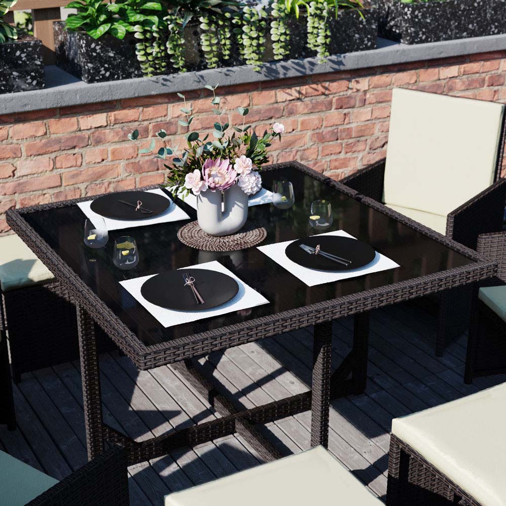 Garden Vida Cuba Rattan Effect 8 Seater Garden Dining Set Brown