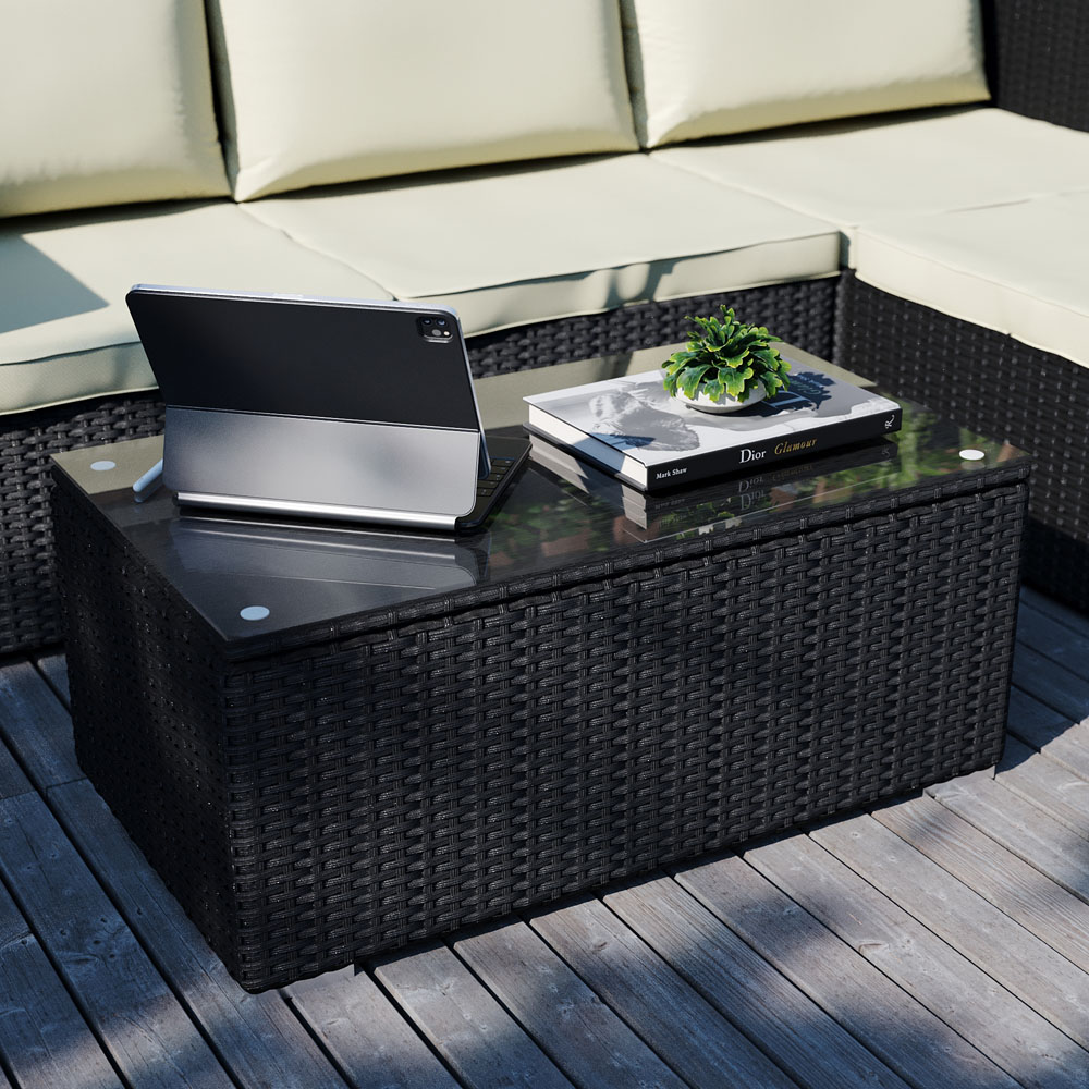 Elevate your outdoor living space with this Garden Vida Hampton Black 4-Seater Corner Rattan Set. With a sleek and modern design, this furniture set is perfect for relaxing and enjoying your outdoor sanctuary. Crafted with high-quality PE rattan, this furniture set is not only stylish but built to last. The back and seat cushions are made for exceptional comfort, providing a cosy seating experience for up to four people. Easy to maintain - you can wash the back cushions to remove stains or spills. Assuring maximum safety, rattan is both fire retardant and UV resistant, ensuring its durability in various weather conditions. Add this classic rattan set and indulge in the perfect outdoor experience. Protect your garden furniture with our durable and waterproof covers. Explore our wide range of heavy-duty Garden Furniture covers to find the perfect fit for your needs.