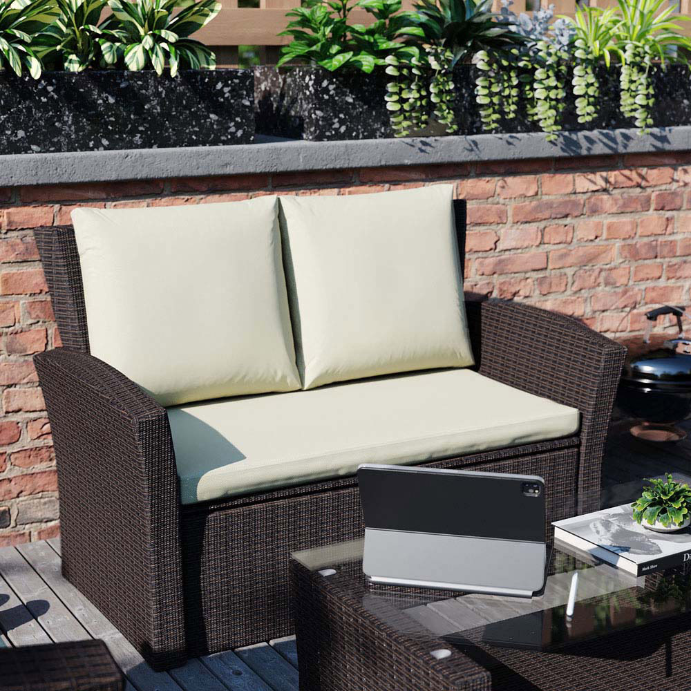 Indulge in a perfect outdoor experience with this Garden Vida Mylor Brown 4-Seater Rattan Set. The expertly crafted rattan furniture perfectly blends with the natural surroundings of your garden. Made with high-quality PE rattan, the set includes a double sofa and two chairs fitted with seat cushions for ultimate comfort. The set also includes a beautiful coffee table featuring a tempered glass top and a gentle lime cushion. Easy to maintain - you can wash the back cushions to remove stains or spills. Assuring maximum safety, rattan is both fire retardant and UV resistant, ensuring its durability in various weather conditions. Add this classic rattan set for a perfect outdoor experience. Protect your garden furniture with our durable and waterproof covers. Explore our wide range of heavy-duty Garden Furniture covers to find the perfect fit for your needs.