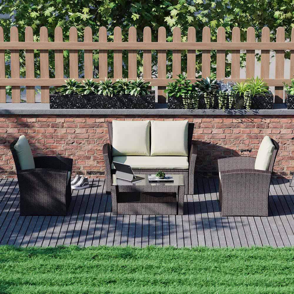 Garden Vida Mylor 4 Seater Brown Rattan Lounge Set
