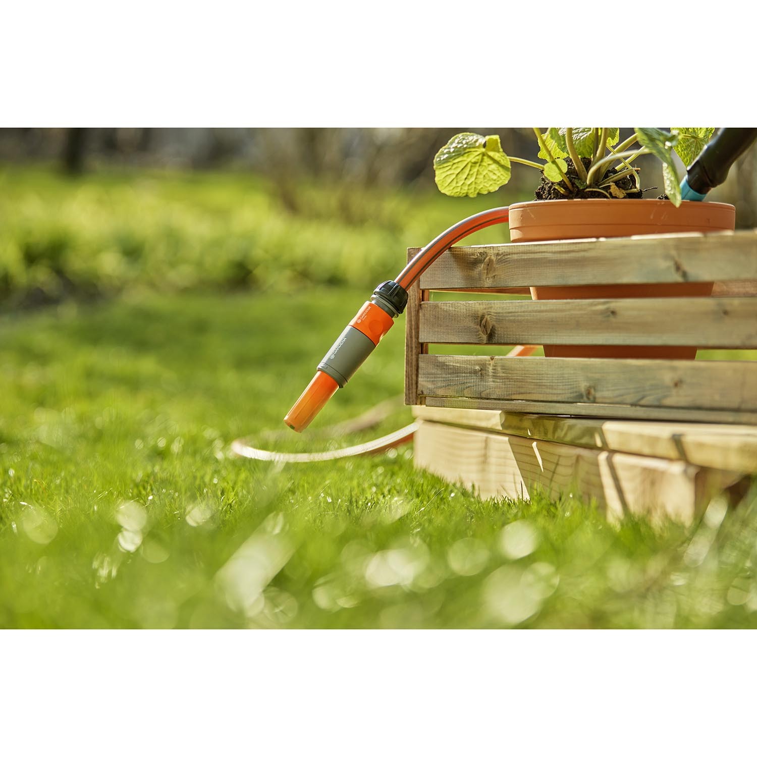 The Gardena Cleaning Hose Nozzle is perfect for both powerful cleaning and gentle irrigation. The hard jet spray setting can remove stubborn stains and dirt from garden furniture and surface areas. For irrigating plants, simply twist the nozzle for the fine mist spray, which is perfect for potted plants, planted areas and flower beds. This easy-to-use and convenient nozzle is the perfect hose accessory.
