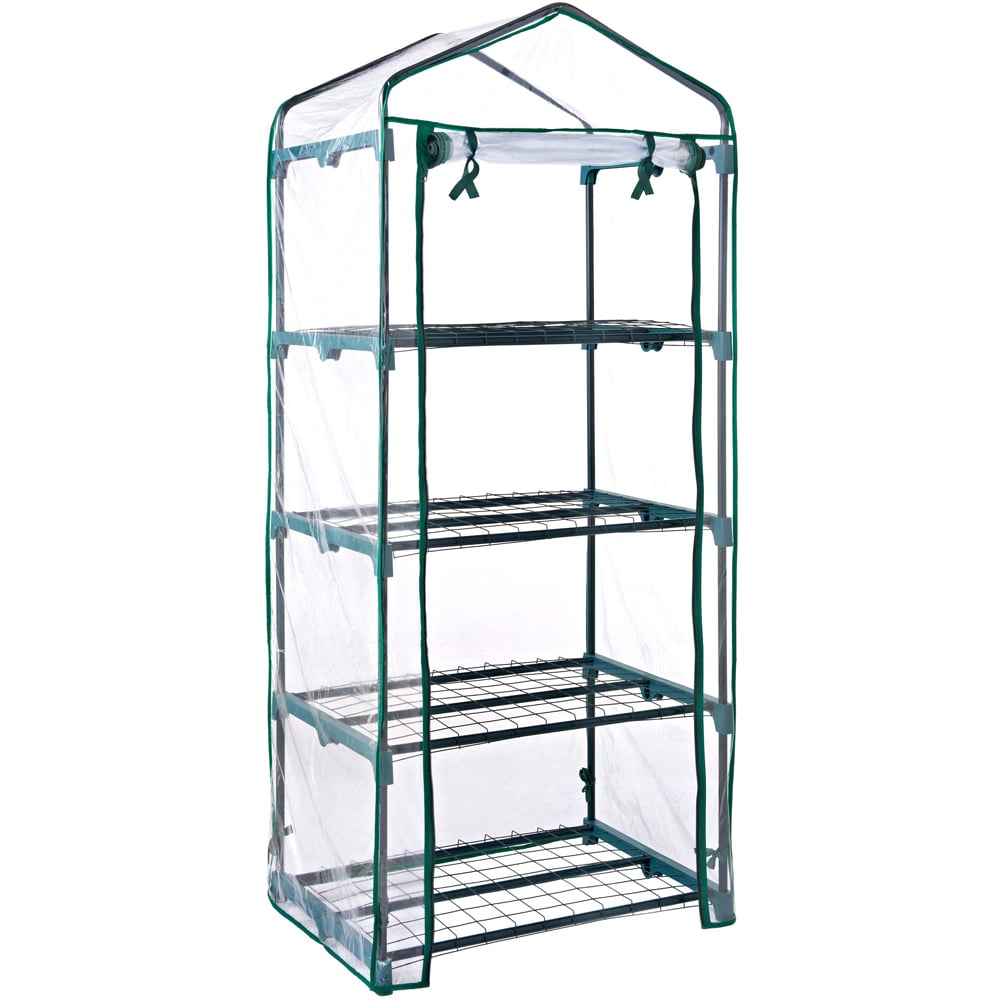 Introducing the Gardenkraft 4-Tier Plastic PVC Greenhouse! This compact outdoor greenhouse is designed to keep your plants safe and thriving throughout the year. Made with a durable yet lightweight metal frame and a transparent plastic cover, it offers a different-tier design to cater to the needs of all types of gardeners. The greenhouses are designed with space-saving in mind, making them perfect for patios, balconies, decking, and similar areas. The transparent plastic covers not only protect your plants from harm but also provide easy access. Simply unzip the doors and tie them above the frame to ensure clear access to the top shelves. Experience the convenience of the Gardenkraft greenhouse today!