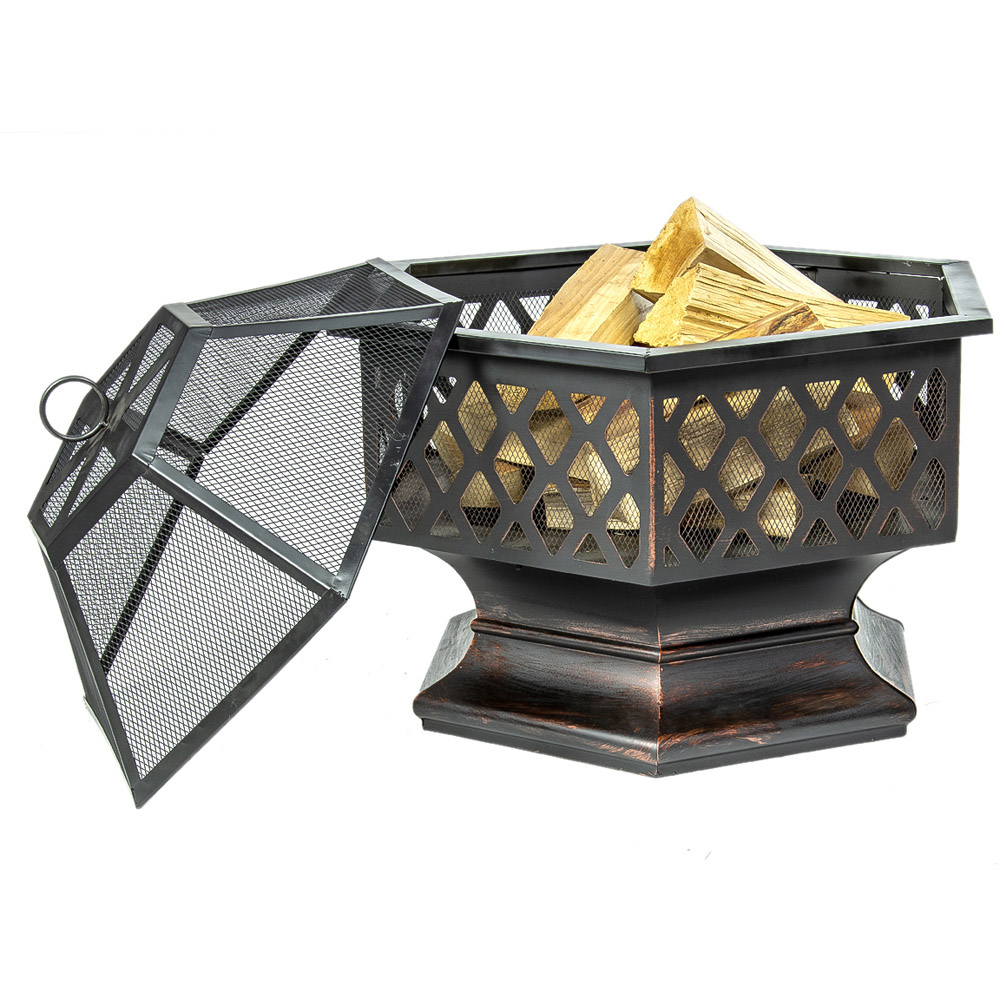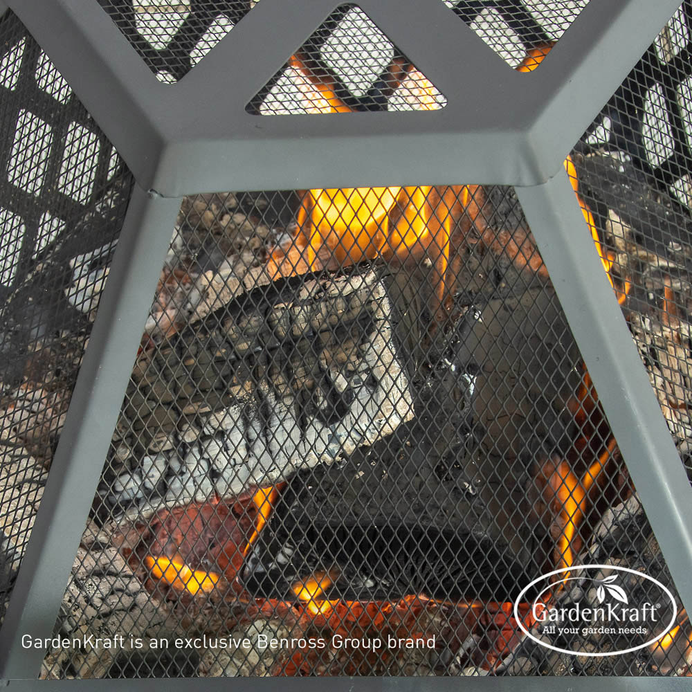 Make a stunning addition to your outdoor space with the GardenKraft Bronze Outdoor Garden Heater Firepit. This outdoor firepit will be the stunning focal point you desire this summertime. The firepit utilises a highly decorative bronze effect finish, adding to the elegance and glamour of the unit. Also, the bowl inside the firepit measures 61cm and can house charcoal or firewood, giving you ultimate control over how you’d like to present your fire. Plus, the diamond mesh panelling ensures the logs, charcoal, and flames stay inside the unit at all times. Manufactured from steel and painted in bronze, the unit can withstand temperatures of up to 300°C. The whole unit measures 62 x 62 x 64cm.