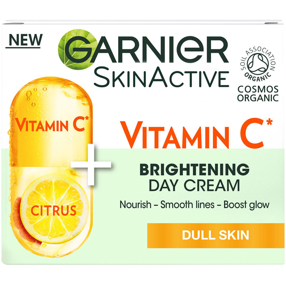 Get glowing and healthy skin with the Garnier Skin Active Vitamin C Brightening Day Cream 190g. Enriched with super citrus and brightening vitamin C, this daily moisturiser works to nourish your skin, leaving it looking smooth, healthy, and glowing. It helps to replump fine lines and reduce their appearance over time, so your skin feels soft, even, and refreshed.