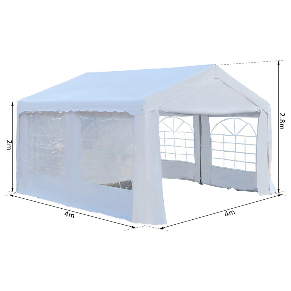 Effortlessly create a much-coveted spot in your garden with this Outsunny 4 x 4m Marquee Carport Shelter Gazebo Tent. Using powder-coated metal for reliable strength and durability, the frame is made into a tall and wide design, giving you plenty of room