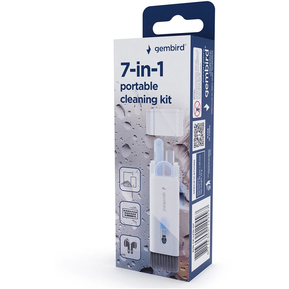 Gembird's 7-in-1 Universal Cleaning Kit is essential for maintaining the cleanliness of your electronic devices. Its compact and portable design allows for easy storage and transport, meaning it's perfect for ensuring your smartphones, tablets, keyboards, and earphones remain in pristine condition on the go. This comprehensive cleaning solution features a cleaning spray bottle, a microfiber wiper, a keyboard key puller, a retractable brush, and a specialised earphone cleaning tool. Each component is designed to effectively remove dust, dirt, and grime from your devices, enhancing their longevity and performance. The earphone cleaning tool is equipped with a practical folding design that incorporates a silicone tip, a soft flocking sponge, and a brush. This ensures a thorough cleaning without damaging delicate components.