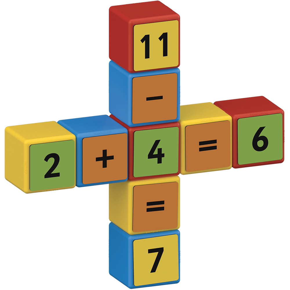 Unlock a world of fun and learning with toys that turn playtime into brain-boosting adventures with Geomag Magicube Math Building Recycled Clips 61 Piece. This Maths Building range of magnetic cubes and clips helps to strengthen early calculation skills, with the recognition of numbers and first sums. This set contains 16 magnetic cubes and 45 clips that will transform this into the right place to learn and includes an illustrated booklet containing tips and examples. They stimulate imagination and creativity, making learning fun. The cubes are made from 100 percent recycled plastic. Suitable for ages 3 years and above.