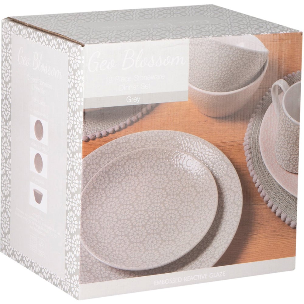 For anyone who takes pride in their dinner table and wants to present their family with beautifully served up food, this 12 Piece Geometric Blossom Dinner Set is a charming and sweet dinner set with all the necessities. Including four dinner plates, four side plates, and four bowls, this set features a sweet floral design over a pale reactive glaze.
