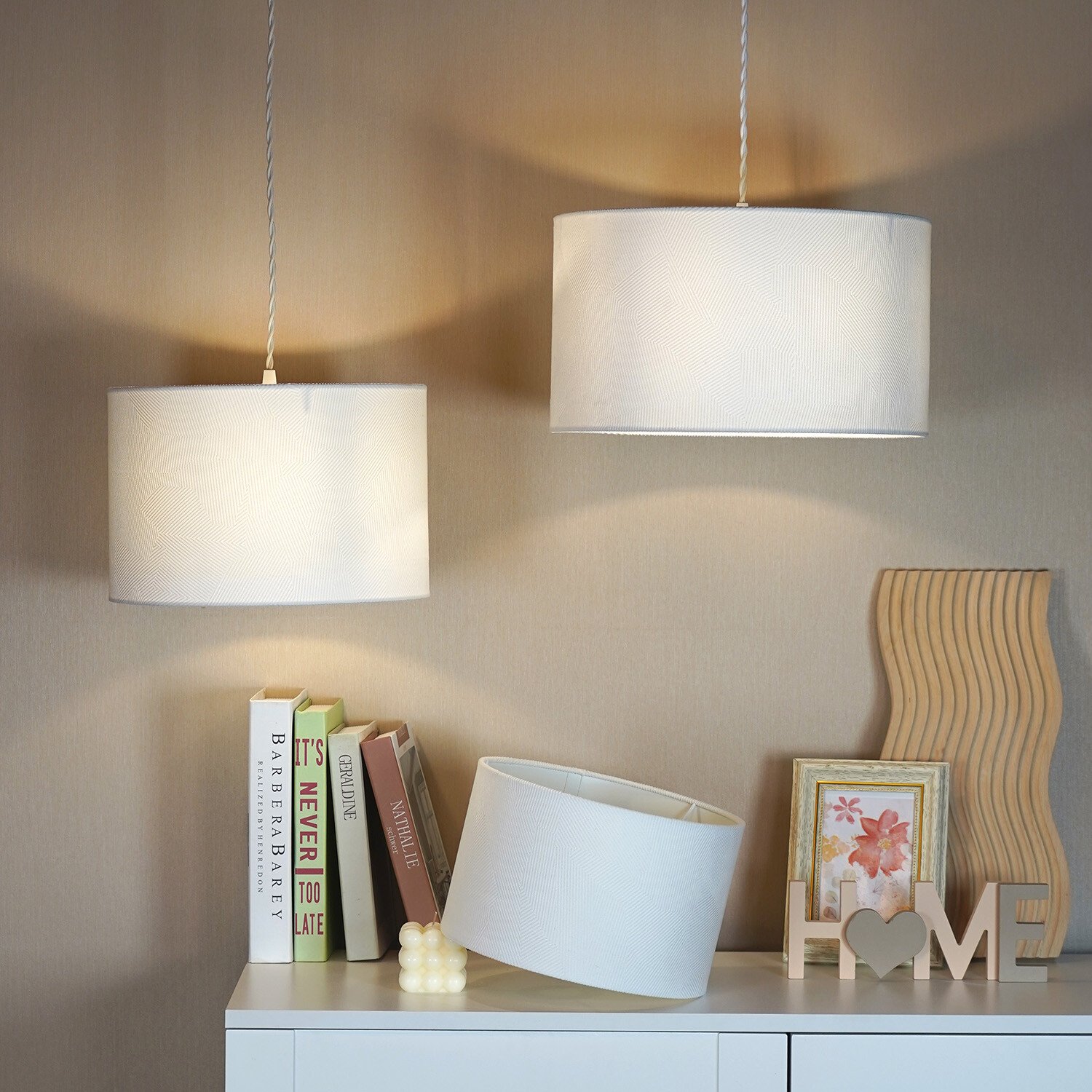 Add a touch of instant elegance to a living room, bedroom, or hallway with this stylish Geometric Drum Shade. This geometric shade comes in a neutral colour that's a perfect for any decor. Ideal for modern spaces, this shade is sure to instantly brighten up your rooms.