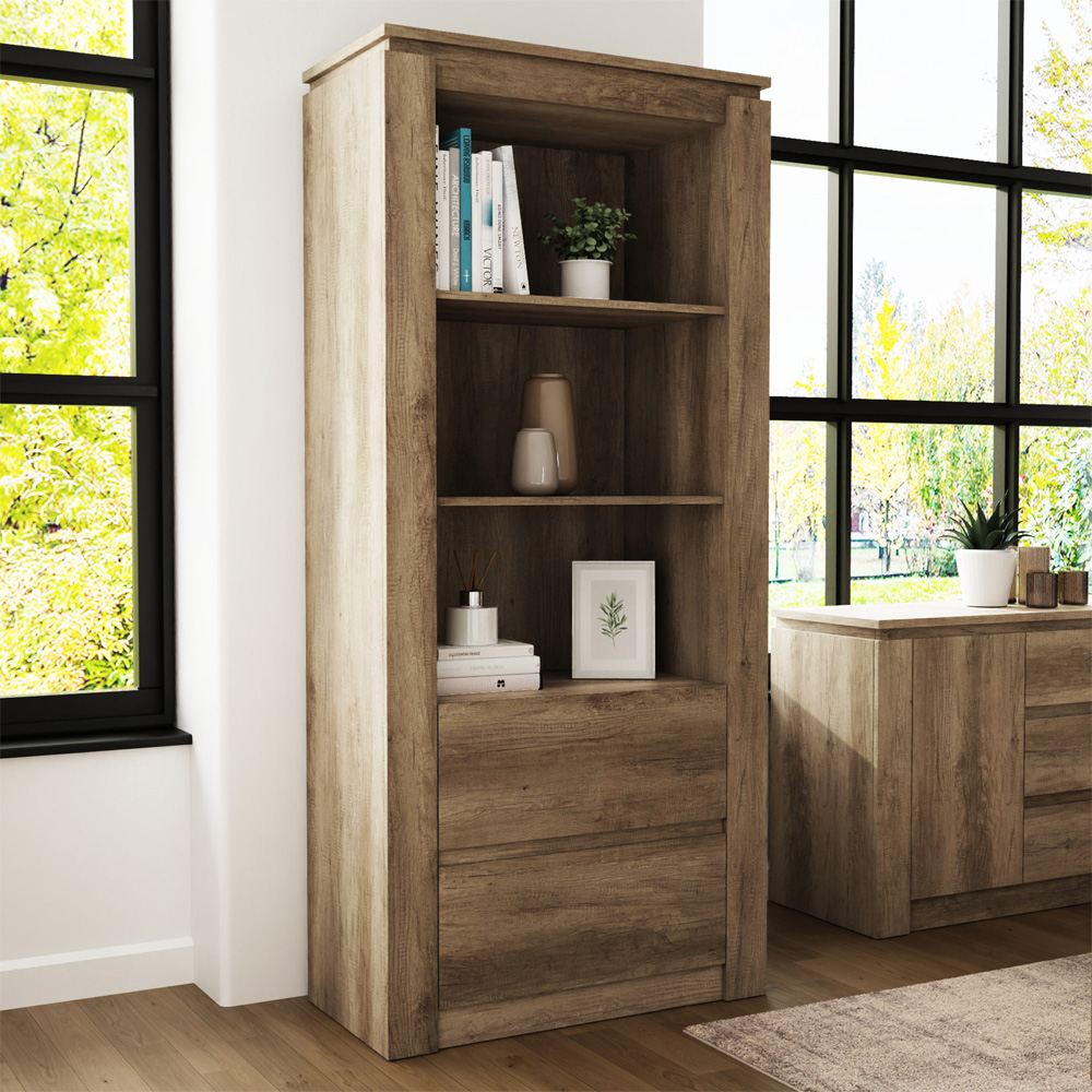 Create a distinctive, individual look with the GFW Canyon Oak Grey Bookcase. It is finished in a unique oak effect 3D paper foil finish. The design itself is associated with longevity and understated luxury. Dimensions: 39.5 x 79.2 x 177.3cm.