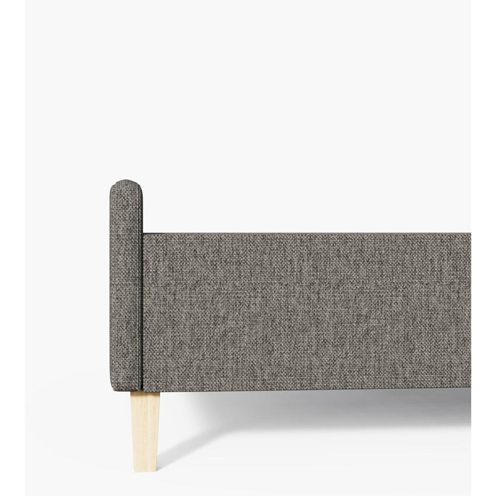 - Upholstered in a sleek dark grey hopsack fabric