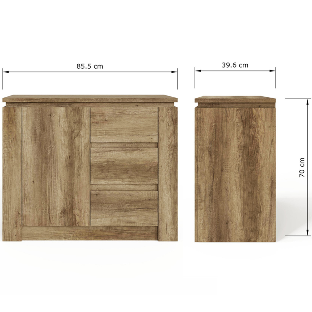 GFW Canyon Single Door 3 Drawer Oak Grey Storage Unit