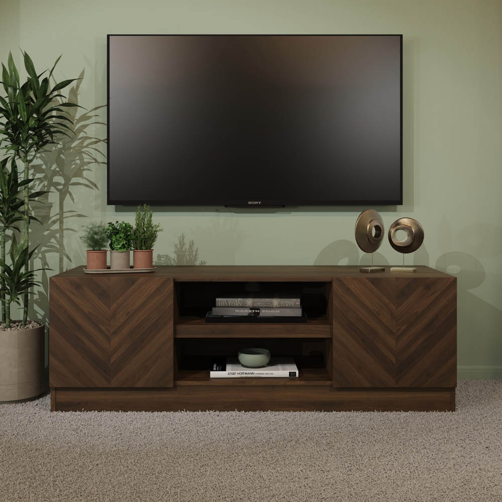 The GFW Catania Royal Walnut TV Unit makes for a stunning addition to any modern home! The sleek, herringbone inspired wood-grain finish of the Catania range is expertly crafted and can be seen on the two doors of this TV cabinet, providing a touch of simple elegance to your living space. It features two horizontal open storage spaces in the middle of the two doors, providing ample storage for your games consoles, set-top boxes or stereos. Bring the enjoyment of a cinema and a games room into your home with the Catania TV cabinet.