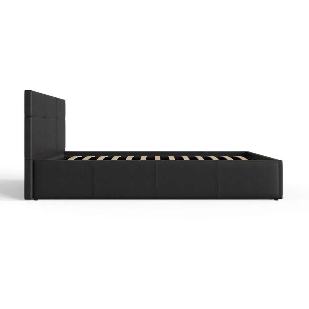 This stunning GFW Double Black Side Lift Ottoman Storage Bed offers an attractive combination of contemporary style and ample storage space. This beautifully crafted frame is finished in high-quality faux leather and complemented by a simple yet stylish stitched headboard. This is an ideal solution if space is at a premium in your bedroom, as the ottoman base provides generous storage space for linen, blankets, towels or clothes. For ease of use, this stylish ottoman has colour-coded holes that allow you to assemble the ottoman to lift up from the side of your choice. The base lifts easily with the help of a gas hydraulic system so you can access the lined storage area underneath the bed.