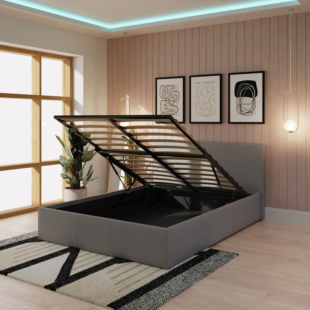 This stunning end-lift ottoman bed offers an attractive combination of contemporary style and ample storage space. This beautifully crafted frame is finished in high-quality hopsack fabric and is complemented by a simple yet stylish stitched headboard. This is an ideal solution if space is at a premium in your bedroom, as the ottoman base provides generous storage space for linen, blankets, towels or clothes. The base lifts easily with the help of a gas hydraulic system so you can access the lined storage area underneath the bed.