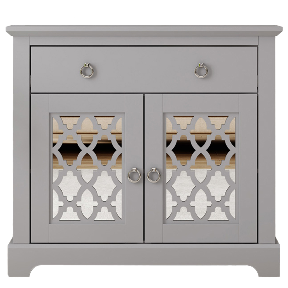 Upgrade your living room with this Honiton Sideboard by GFW. This sideboard features a sleek and facile design with a stylish appearance that can go with any interior. With its grey finish, this classic sideboard can add an aesthetic look to your home decor. This sideboard has two doors and one drawer complemented by simple steel handles and includes upgraded steel ball slides for smooth drawer glides. It also helps you to organize your small household appliances, wine, and utensils. This sideboard is made from sturdy wood and will last long and uplift your home decor. The design ensures beauty and durability by combining engineered wood with a lovely natural wood grain colour variation. It's an elegant addition to your living room, bedroom, or kitchen area because of its sleek design, which also lends an air of refinement to any space. Follow the illustrated instructions in the package, including all installation accessories. The measurements of the sideboard are H74.8 x W82.2 x D39.8cm.
