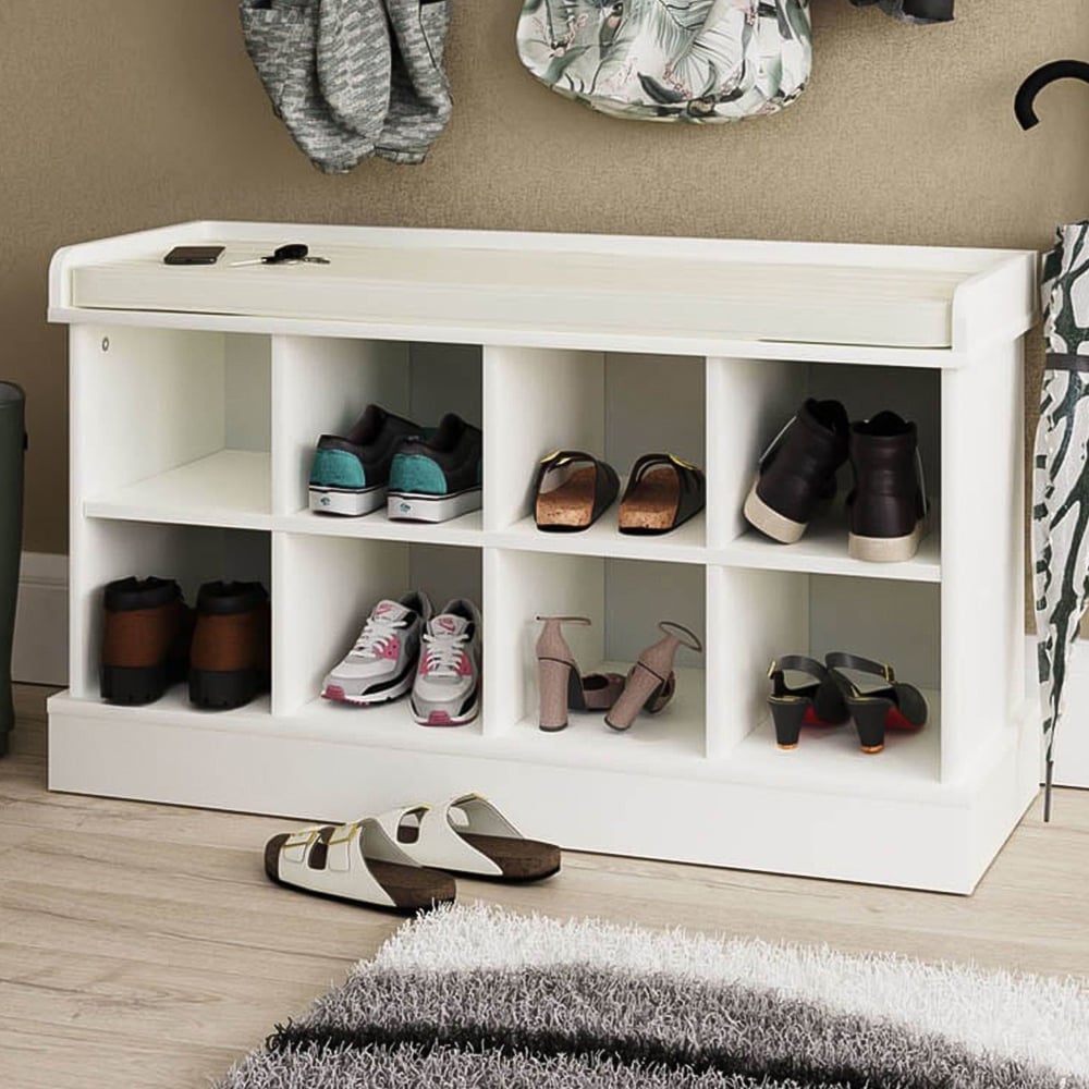 Make a practical and stylish addition to your home with the GFW Kempton White Shoe Bench. It features eight compartments and a padded seat cushion. Dimensions: 34 x 97x 56cm.