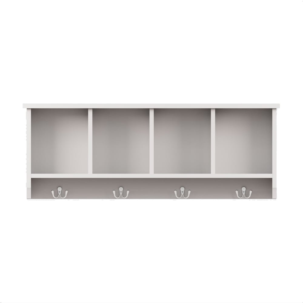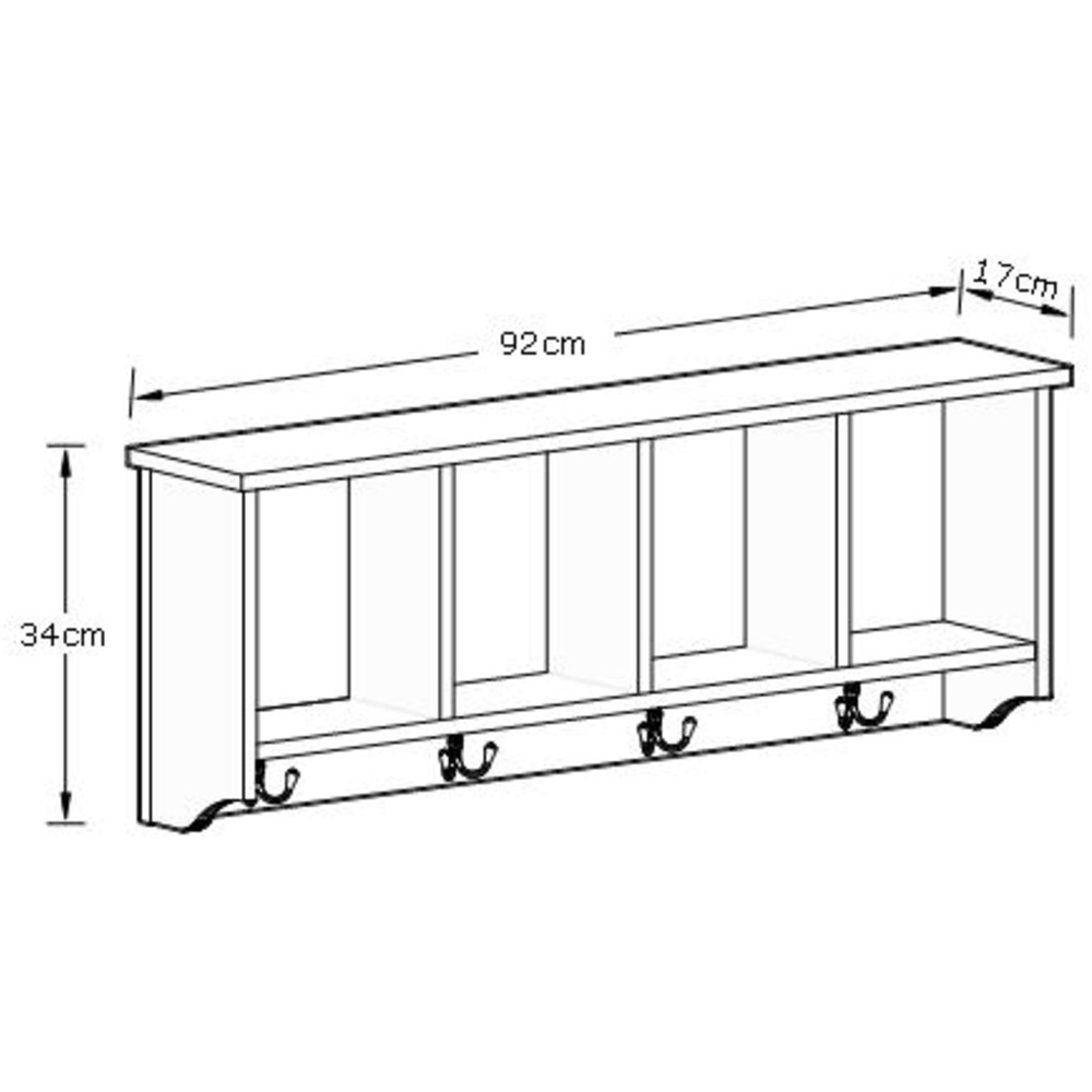 Add extra storage space to your home with GFW Kempton White Wall Mounted Storage Shelves. The shelf has four storage compartments and hanging hooks. It offers great hallway storage solutions. Dimensions: 34 x 92 x 17cm.