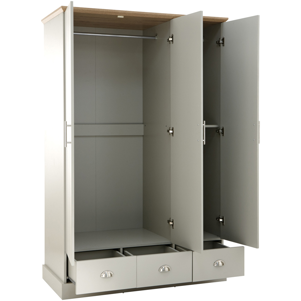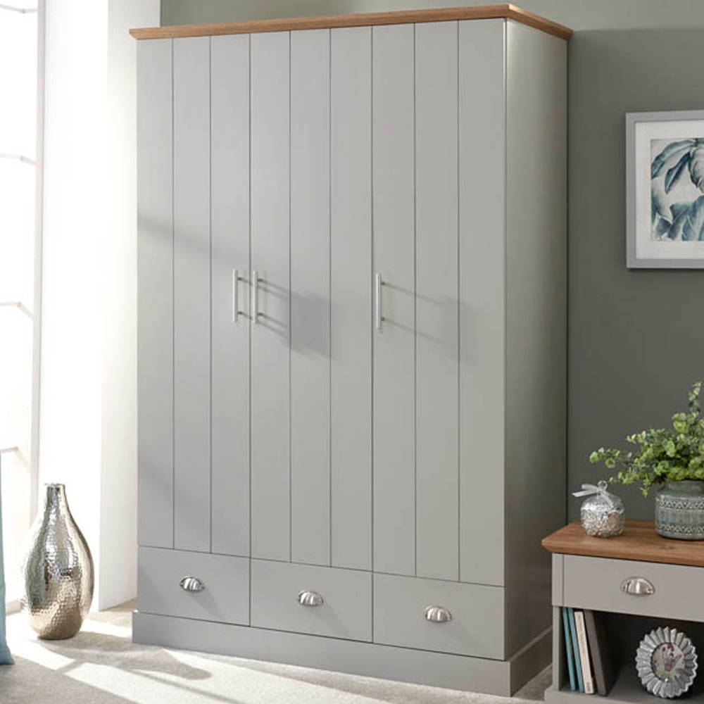 GFW Kendal 3 Door 3 Drawer Grey Wardrobe
